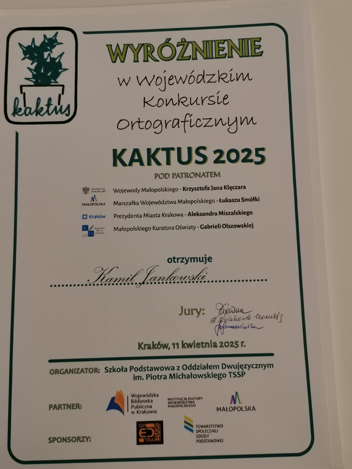 Wojewódzki Konkurs Ortograficzny „Kaktus” – gala wręczenia nagród