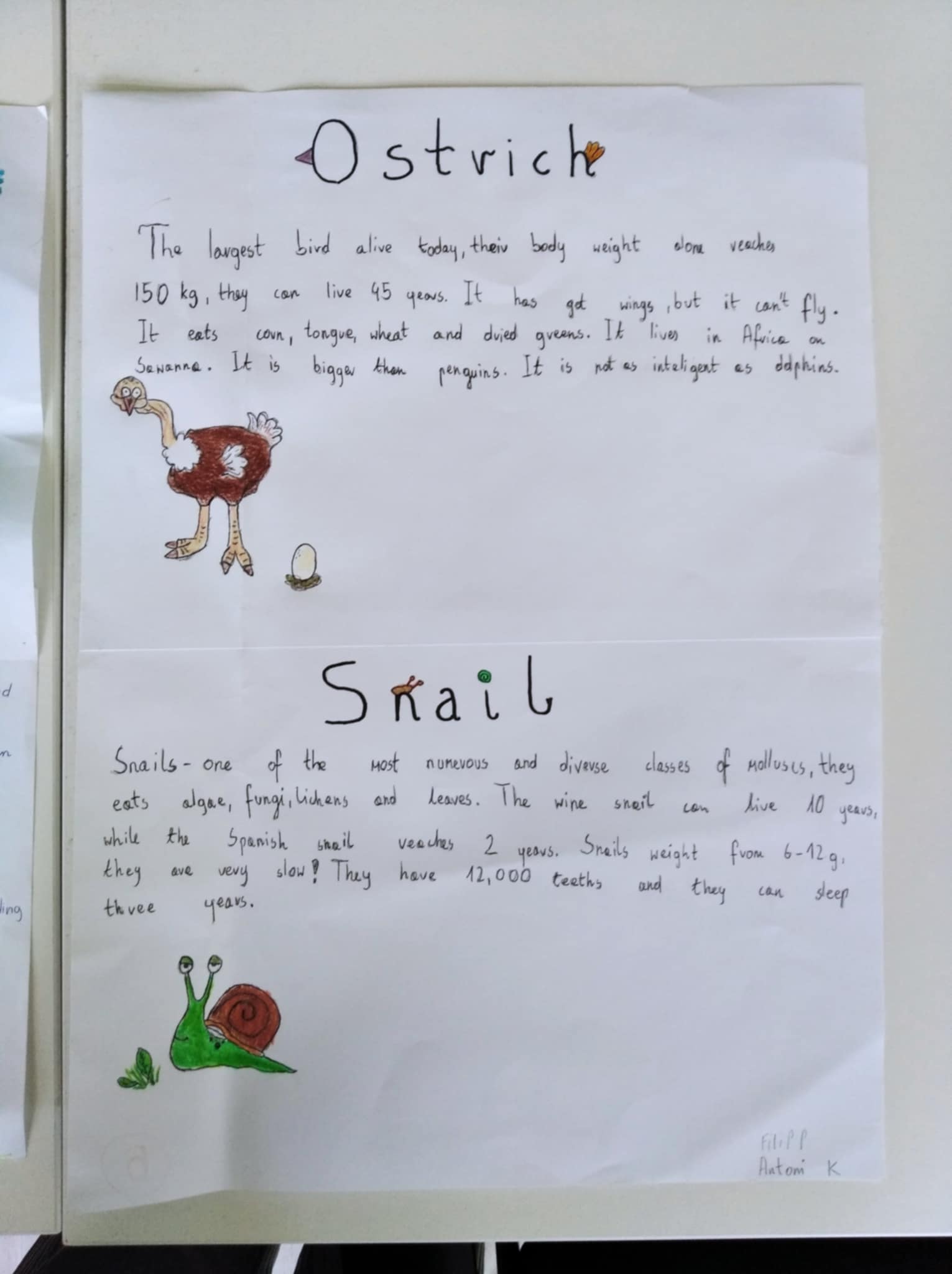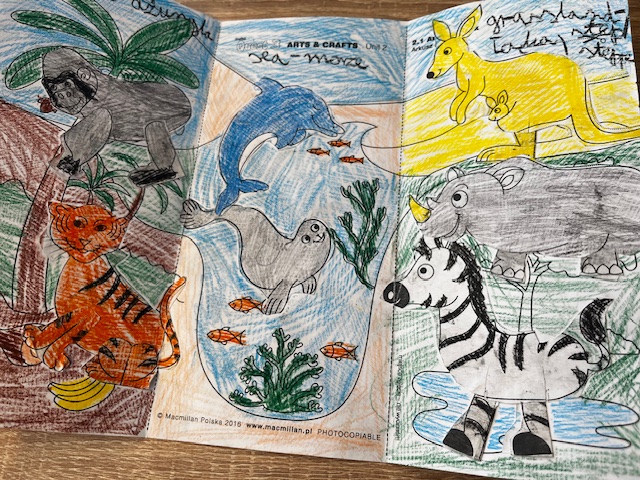 Tworzyliśmy gry dydaktyczne pozwalające utrwalać poznane słownictwo, np. Memory, a także wykreślanki i krzyżówki. Graliśmy w gry stworzone przez uczniów biorących udział w projekcie”EscapeClassroom” i mogliśmy się przekonać, że gry edukacyjne są doskonała formą nauki, pomagają nam poszerzać wiedzę i przyczyniają się do naszych sukcesów edukacyjnych. Powstały też projekty My Favourite Wild Animals. Klasy czwarte rozwiązywały zagadki logiczne, rebusy i krzyżówki realizując cele projektu „Escape Classroom – gry edukacyjne strategią sukcesu ucznia”.