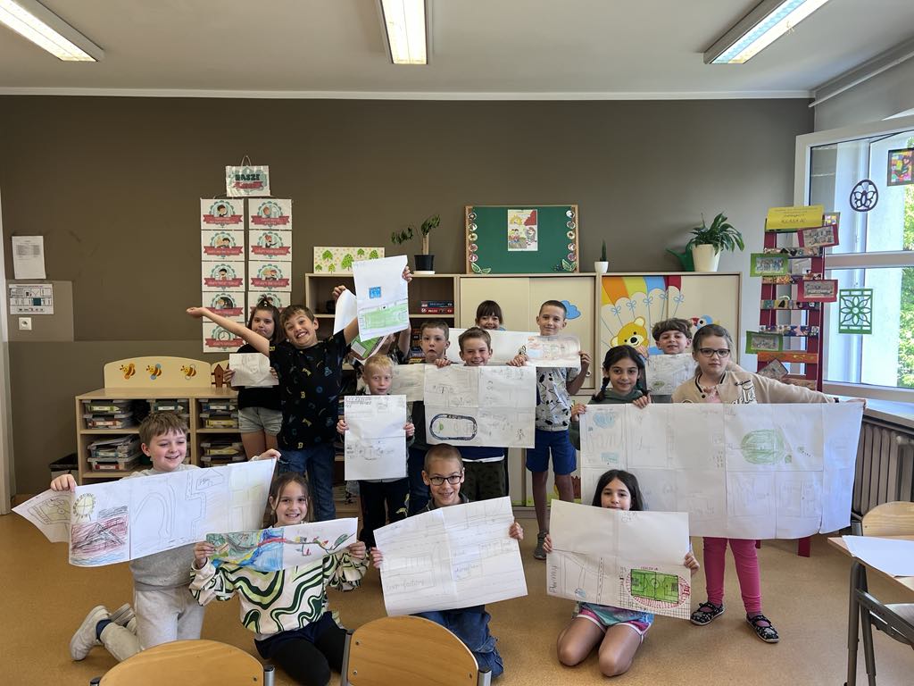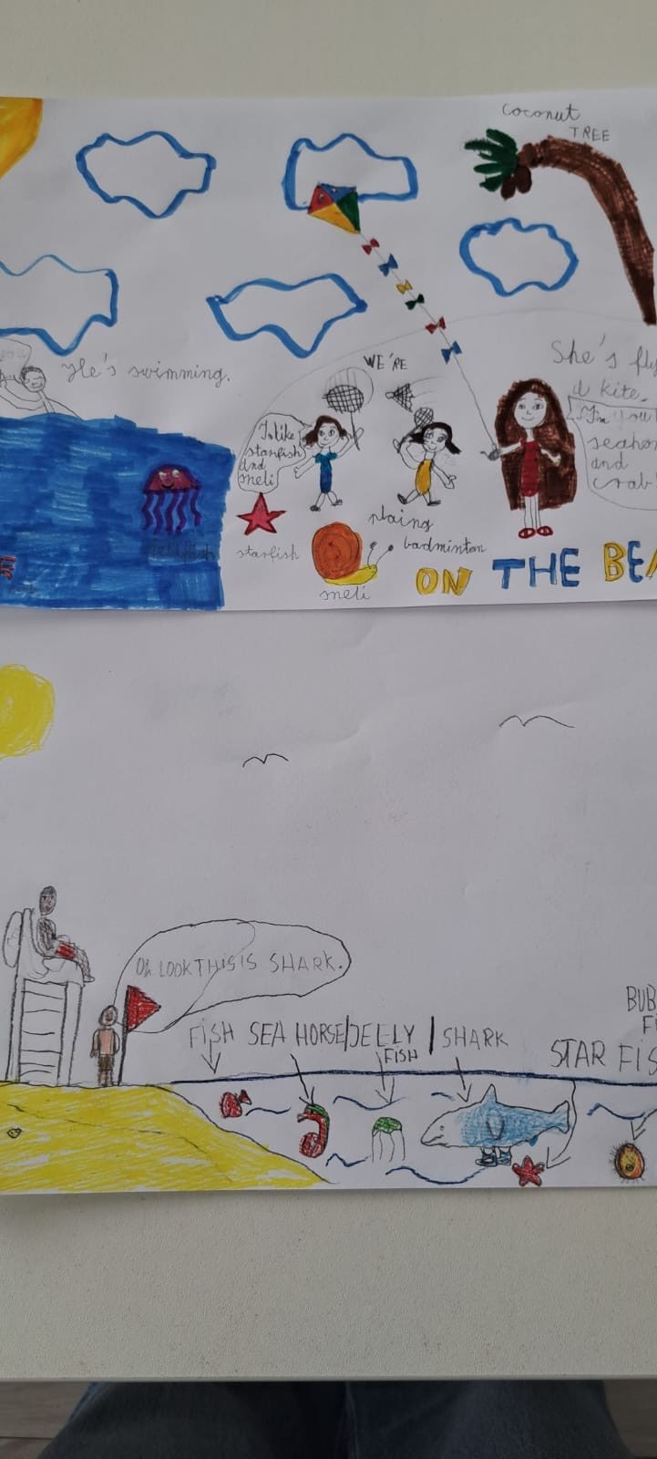 W klasach trzecich poznaliśmy morskie stworzenia oglądając edukacyjne filmiki w języku angielskim, a także stworzyliśmy mini zoo z egzotycznymi zwierzakami. Poznaliśmy też historyjkę The Story of Stone Soup. Klasy trzecie tworzyły projekt My holiday, klasy drugie – My city, a klasy pierwsze – My skateboard.