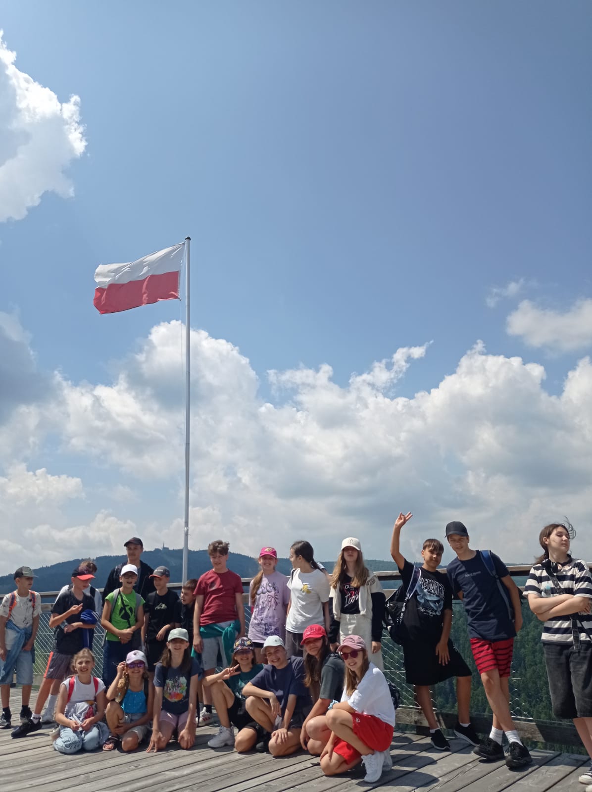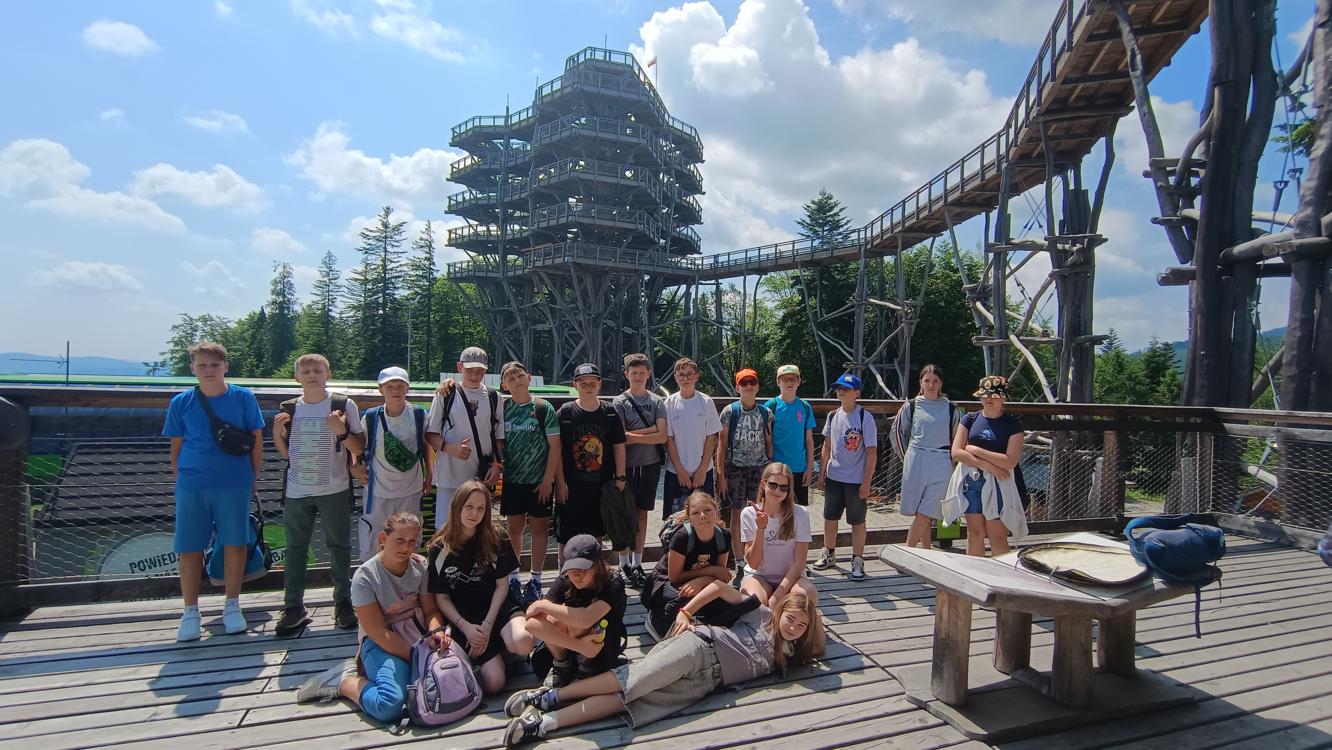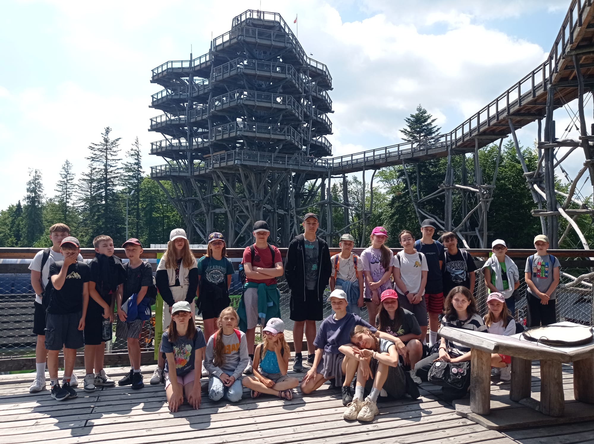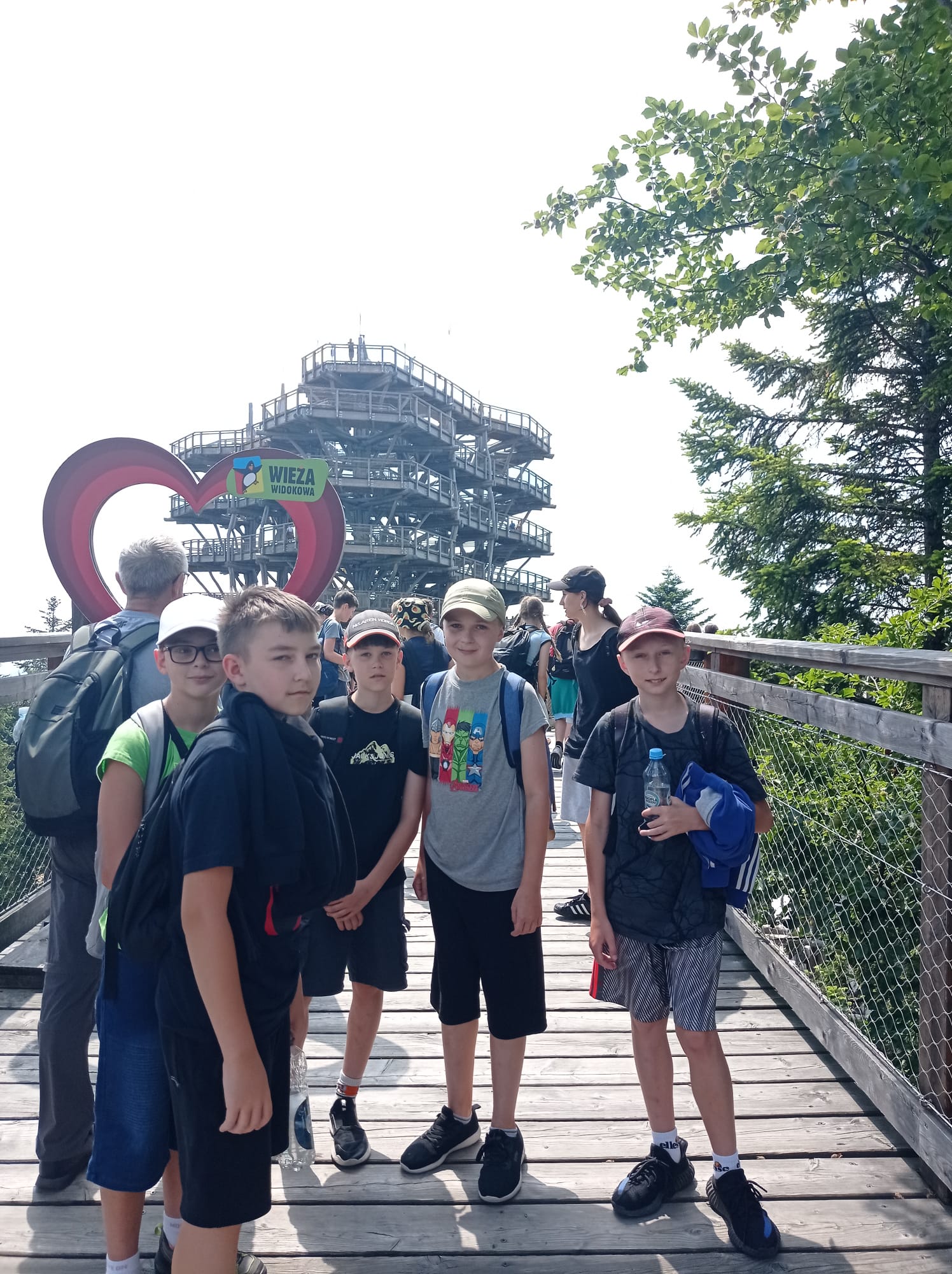 16 czerwca klasa 5 a i 5c wybrały się na wycieczkę do Krynicy Zdrój. Pierwszym punktem programu była Wieża widokowa ze ścieżką w koronach drzew, o unikatowej 49, 5 metrowej drewnianej konstrukcji. Prowadząca do niej ponad kilometrowa ścieżka przyrodniczo-edukacyjna zapewniła naszym uczniom przepiękne widoki i niezapomniane wrażenia. Następnie zobaczyliśmy symbol Krynicy-Zdrój, Górę Parkową, na którą dojechaliśmy kolejką linowo-terenową PKL.  Ostatnią atrakcją tego dnia był spacer w centrum uzdrowiskowego miasta i pyszne lody.