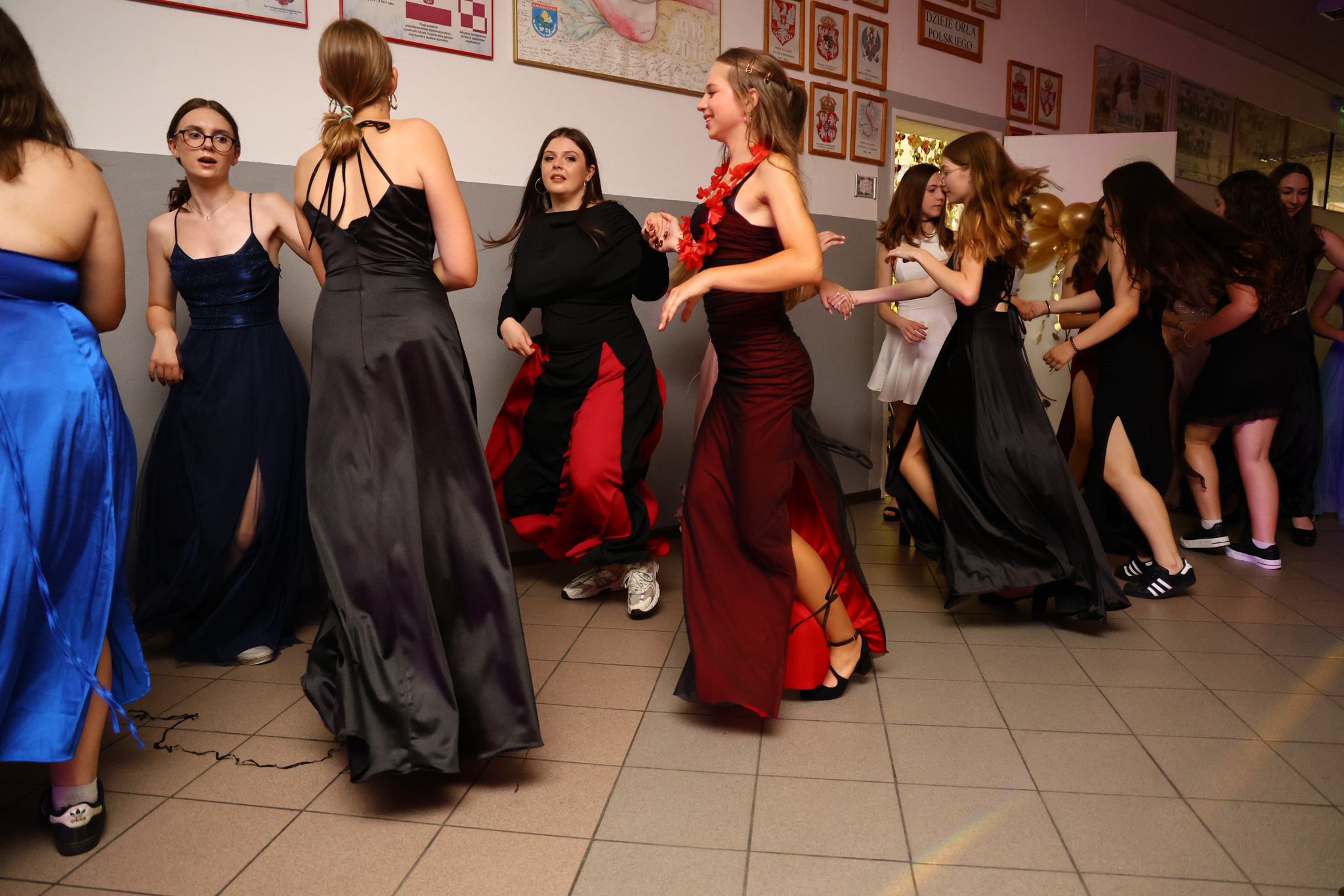 Sale szkolne zamieniły się tego dnia w magiczne przestrzenie – starannie udekorowane, pełne świateł, balonów i kwiatów, zachwycały wszystkich uczestników. Nie zabrakło również foto-budki, która cieszyła się ogromnym powodzeniem – pamiątkowe zdjęcia z koleżankami, kolegami, nauczycielami i rodzicami z pewnością będą przypominać o tych niezapomnianych chwilach przez długie lata.