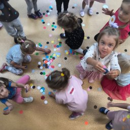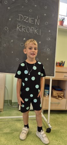 15 września w naszym przedszkolu obchodziliśmy Międzynarodowy Dzień Kropki. To święto kreatywności, wzbudzania pomysłowości do tworzenia i odwagi. Z okazji tego święta dzieci z naszego przedszkola ubrały się w ubrania w kropki i grochy. W tym dniu dzieci poznały historię Vashti bohaterki opowiastki ,,The dot” autorstwa kanadyjskiego pisarza książek dla dzieci Petera H. Reynoldsa. Z uwagi na to, że to święto zabawy dzieci miały okazję bawić się przy piosenkach o kropce, poznały wierszyki o kropkach, nie zabrakło zabawy w przeliczanie kropek, a także dzieci stworzyły piękne prace plastyczne, których inspiracją była kropka.