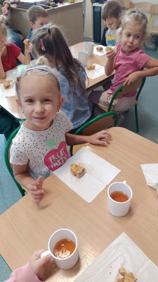 26 września dzieci z naszego przedszkola obchodziły dzień jabłka. Święto to ma na celu popularyzację spożywania jabłek i promowania zdrowego stylu życia. Dzieci podczas zajęć poznały wartości odżywcze jabłek a także potrawy jakie można z nich przygotować. W tym dniu na dzieci czekała degustacja jabłek, soku jabłkowego oraz szarlotki. Dzieci wzięły udział w różnych zabawach związanych z jabłkiem oraz stworzyły piękne prace plastyczne.