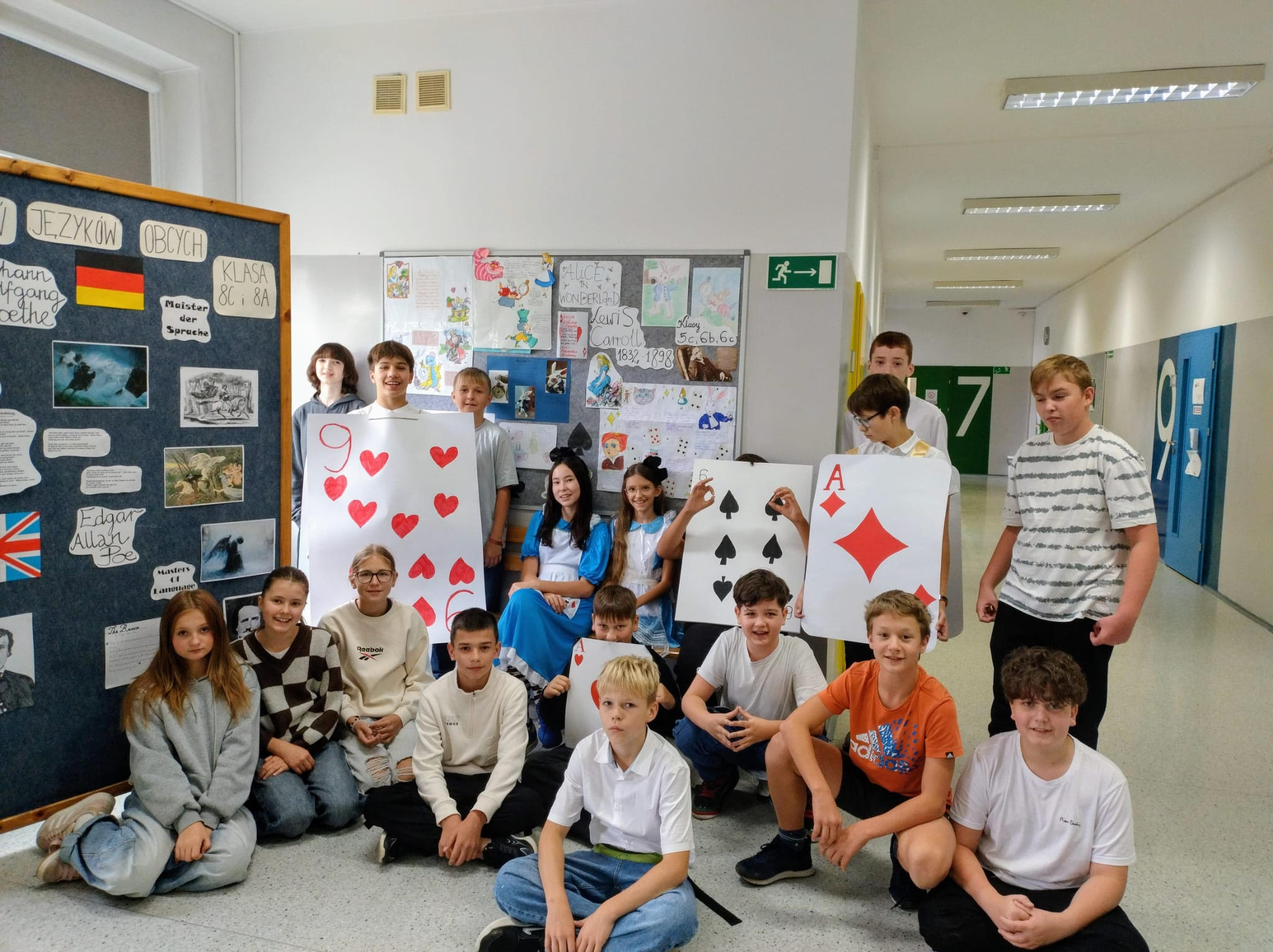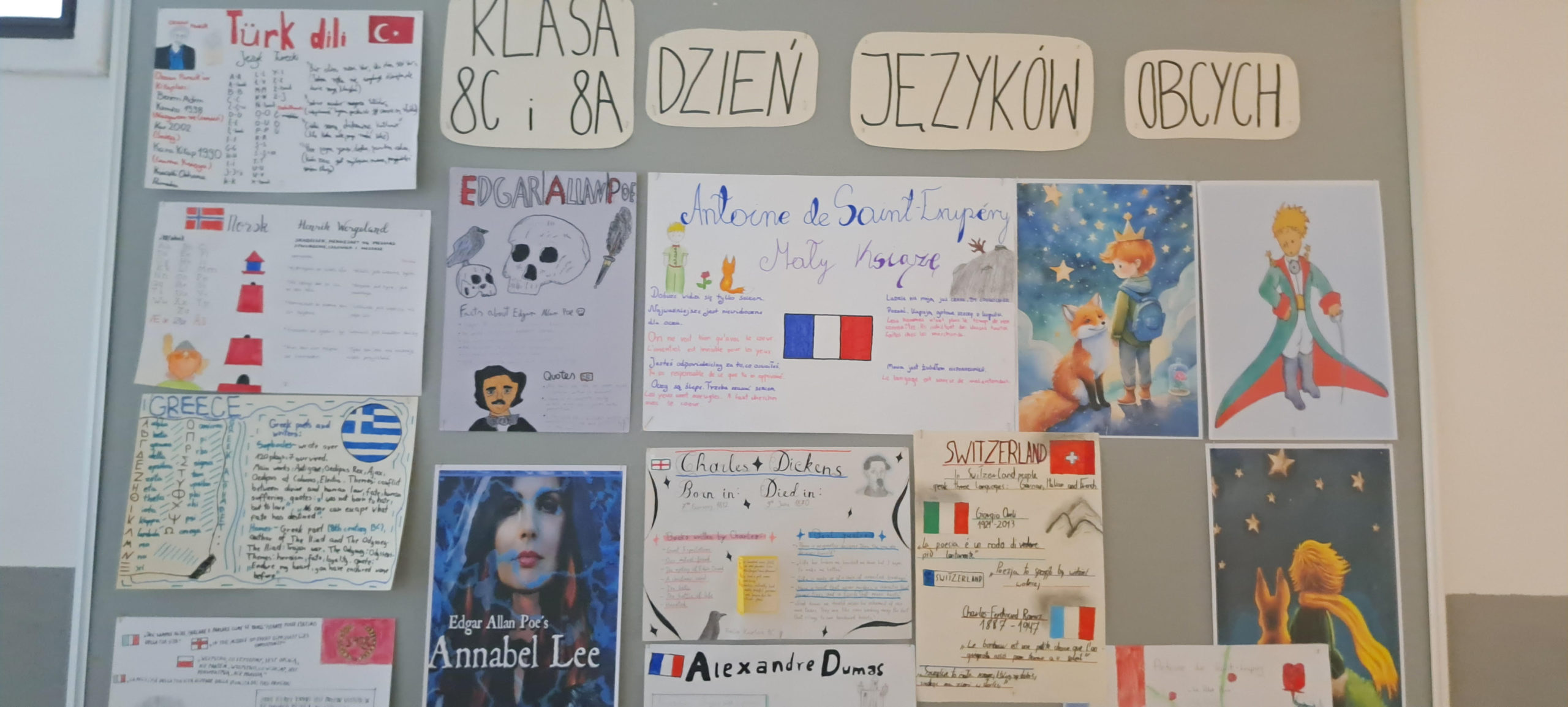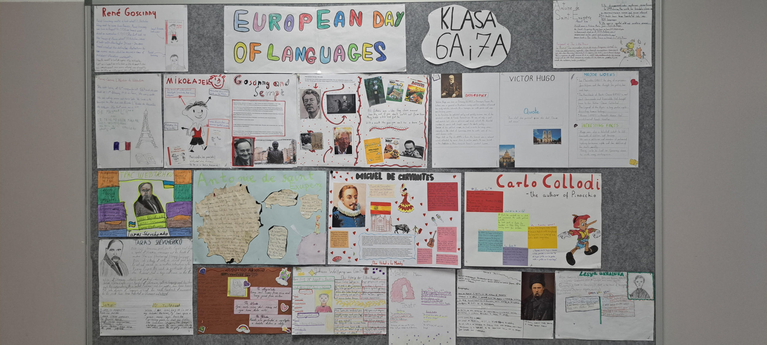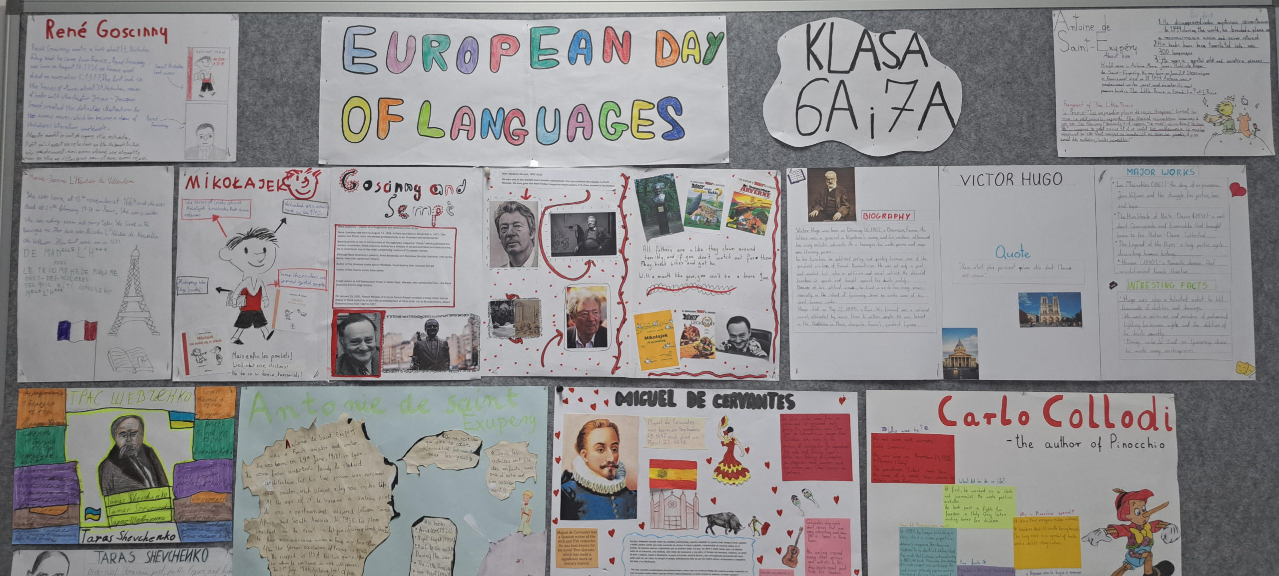 Uczniom klas siódmych i ósmych zaproponowałyśmy nieco odmienne podejście do tematu języków obcych. W tym roku, po raz pierwszy, powiązałyśmy Europejski Dzień Języków Obcych z europejską literaturą. Dzięki temu, uczniowie mieli okazję pracować nad projektami związanymi z twórczością wybitnych pisarzy, takich jak: Dante Alighieri, Antoine de Saint – Exupery, Johann Wolfgang Goethe, Edgar Allan Poe, Charles Dickens, Miguel de Cervantes, Alexander Dumas, Marek Aureliusz, Carlo Collodi czy Taras Szewczenko.
