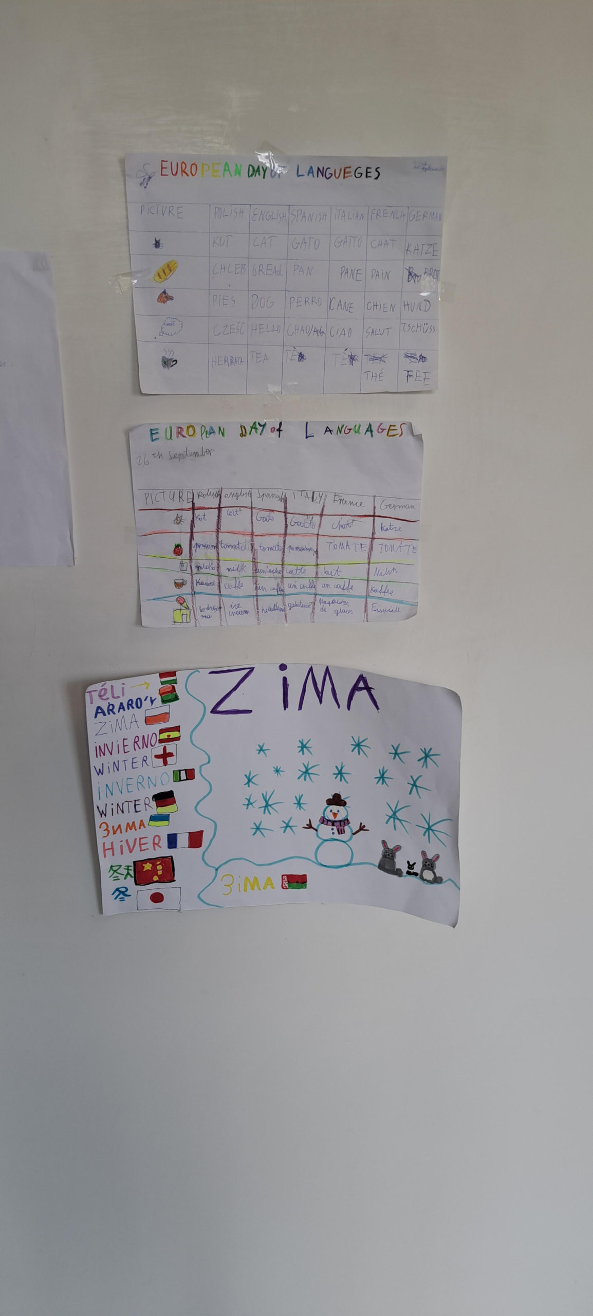 Owocem prac uczniów były wielojęzykowe słowniczki oraz projekty prezentujące system znaków poszczególnych języków. Powstały prace prezentujące, między innymi, alfabet grecki i norweski. Dzieci tłumaczyły wybrane przez siebie słowa na języki europejskie, takie jak duński, szwedzki, chorwacki, francuski, fiński, i wiele innych.