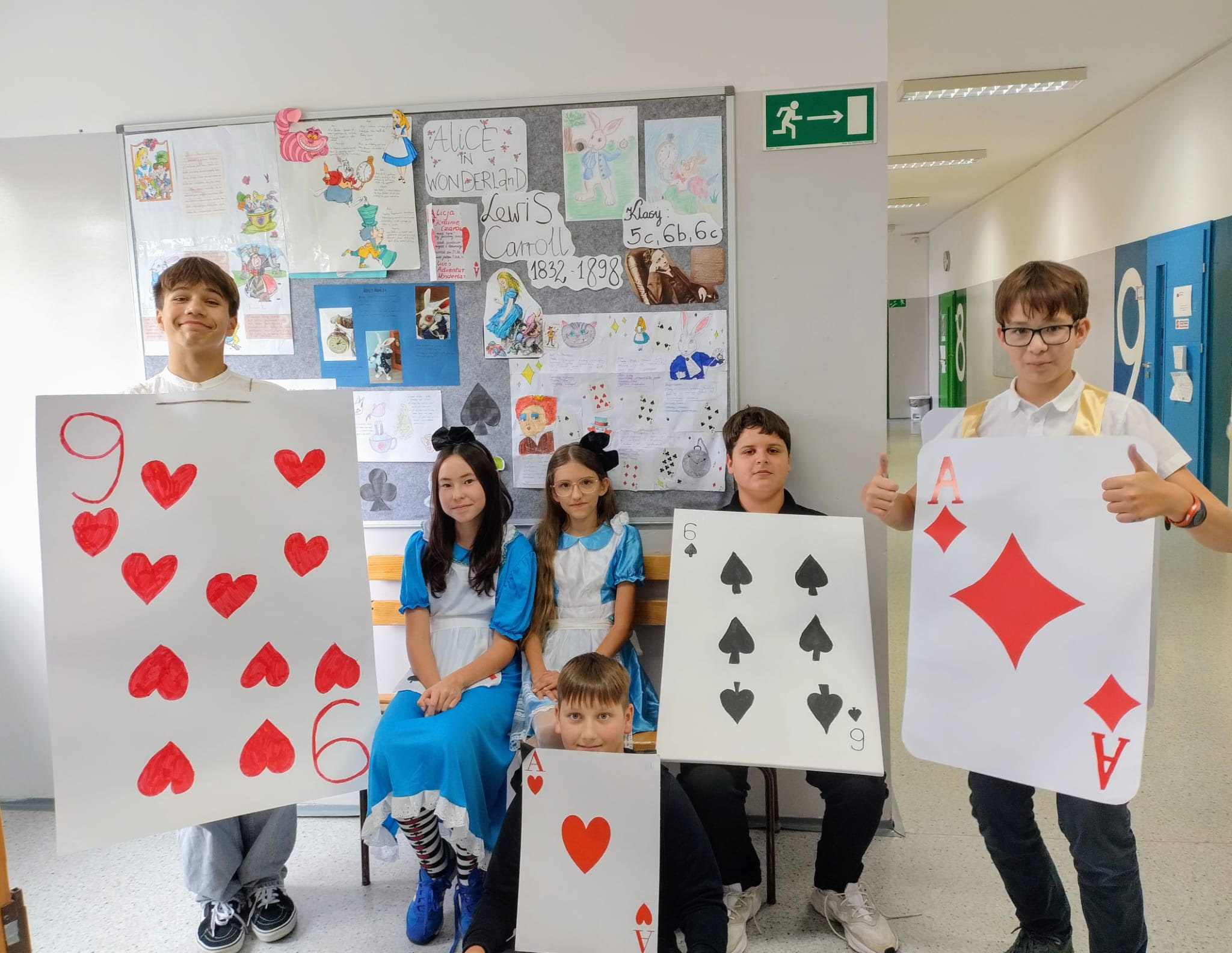 Wystawa to jednak nie wszystko. 26 września, w dniu, gdy obchodzony jest Europejski Dzień Języków Obcych, uczniowie klasy 6b przybyli do szkoły przebrani za postacie z Alicji w Krainie Czarów, aby zachęcić do udziału w kolejnym ważnym wydarzeniu, które miało miejsce u nas w szkole kilka dni później. Był to uroczyście obchodzony Europejski Dzień Muzyki, przygotowany przez panią Luizę Bernatowicz. Tego dnia muzyka spotkała się z literaturą i kinem, ponieważ jednym z elementów koncertu była parada postaci z Alicji w Krainie Czarów przy dźwiękach muzyki z filmu Tima Burtona.