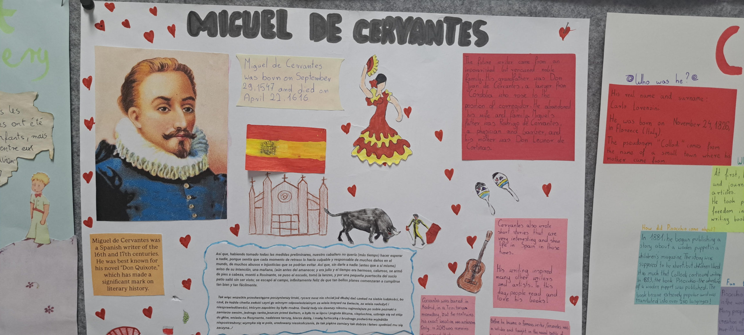 Projekty przygotowane przez uczniów imponują starannym wykonaniem, ale przede wszystkim przemyślaną formą. Nie brakuje tam cytatów znanych dzieł, w oryginale i w przekładzie. Pracując nad swoimi projektami, uczniowie poznawali życiorysy pisarzy, ich dzieła, które przeszły do historii literatury światowej, jak również stworzonych przez nich ikonicznych bohaterów, takich jak Don Kichot, Mały Książę czy Alicja w Krainie Czarów. Wielu uczniów podzieliło się z nami swoim talentem plastycznym, powstały przepiękne portrety Dantego Alighieri i Edgara Allan Poe.