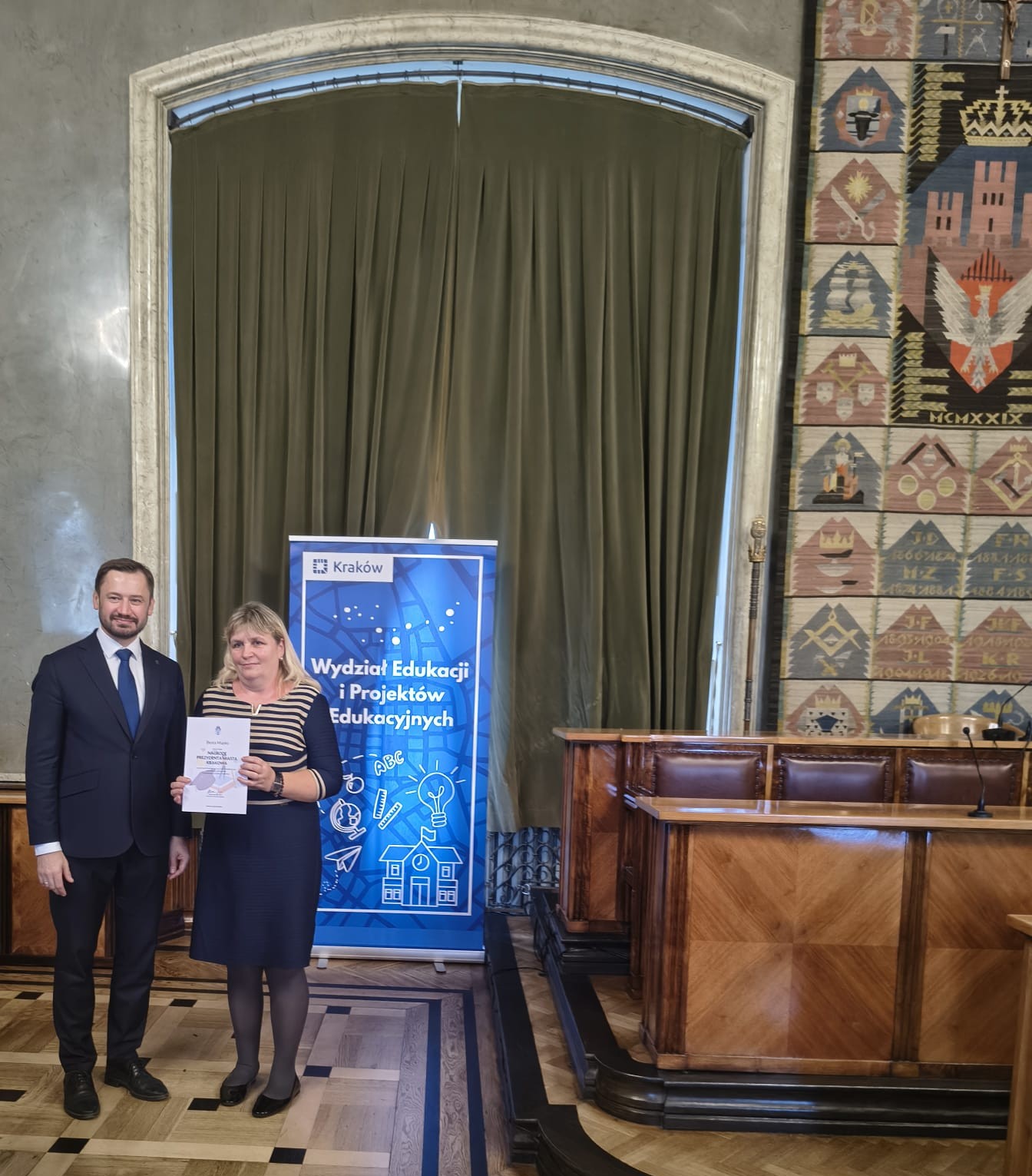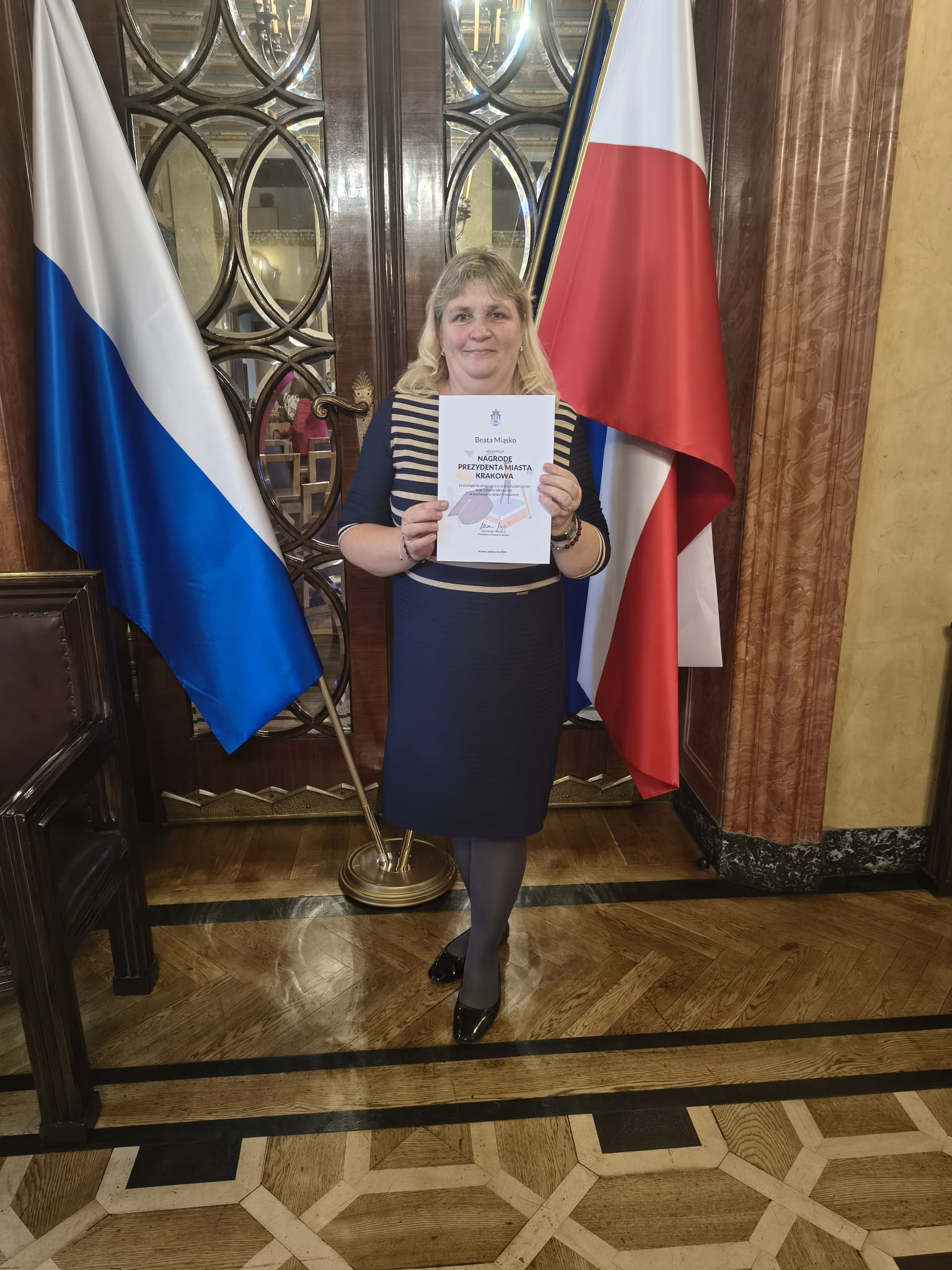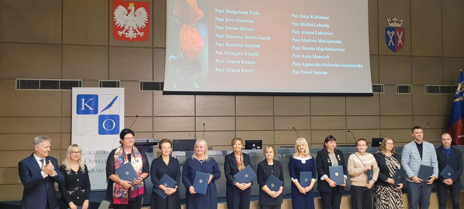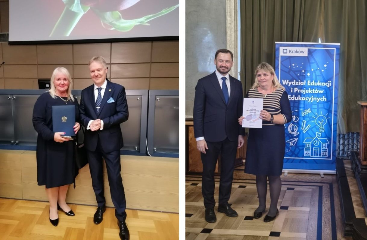 Pani Małgorzata Fyda, nauczycielka geografii, otrzymała Nagrodę Małopolskiego Kuratora Oświaty, natomiast pani Beata Miąsko, nauczycielka edukacji wczesnoszkolnej, została wyróżniona Nagrodą Prezydenta Miasta Krakowa.