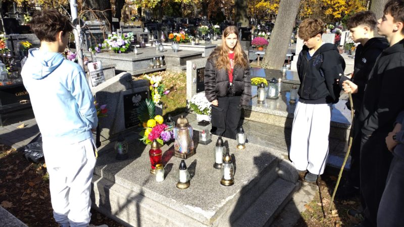 Pamięć o bohaterach – wizyta klasy 7a na cmentarzu