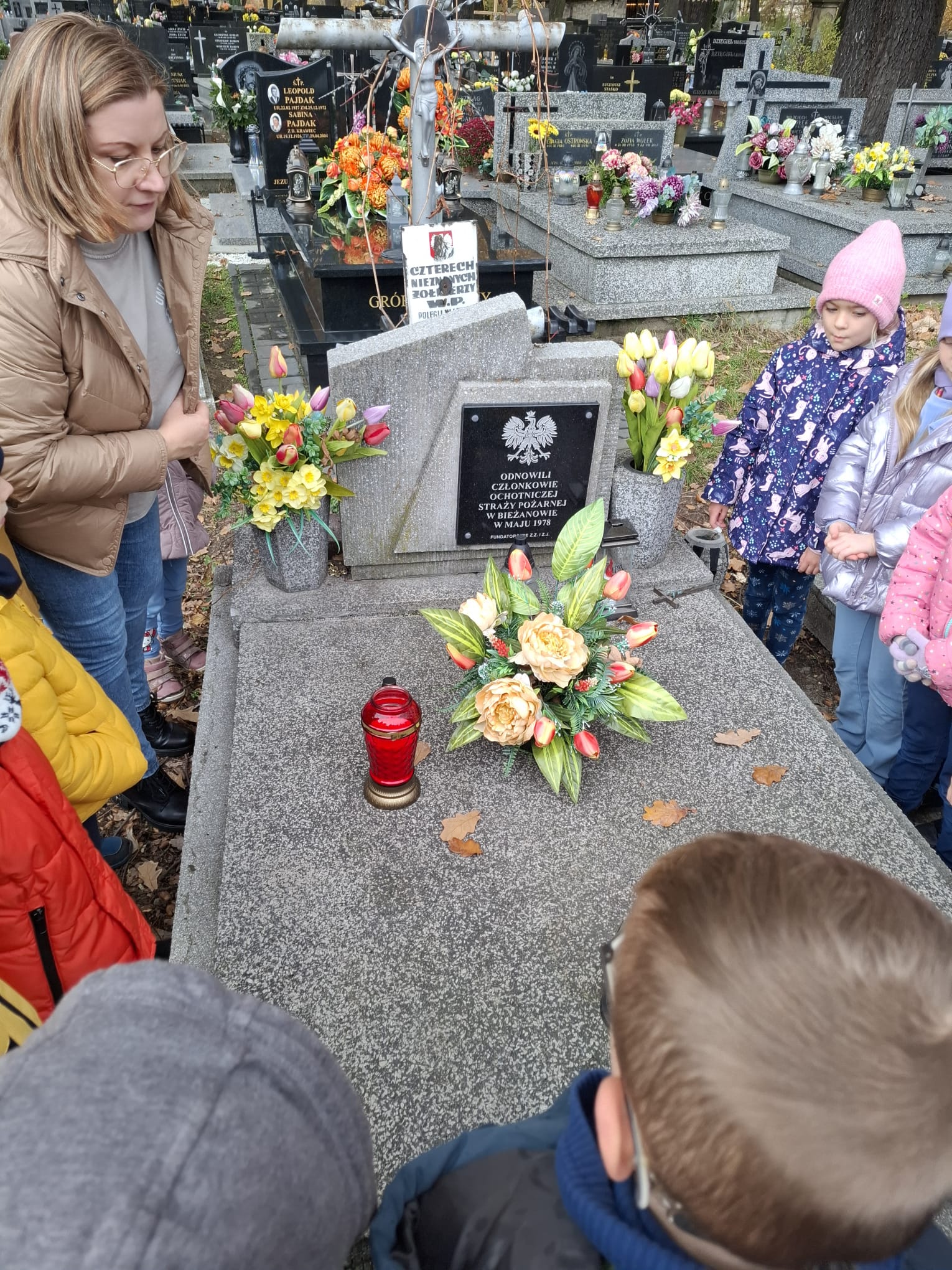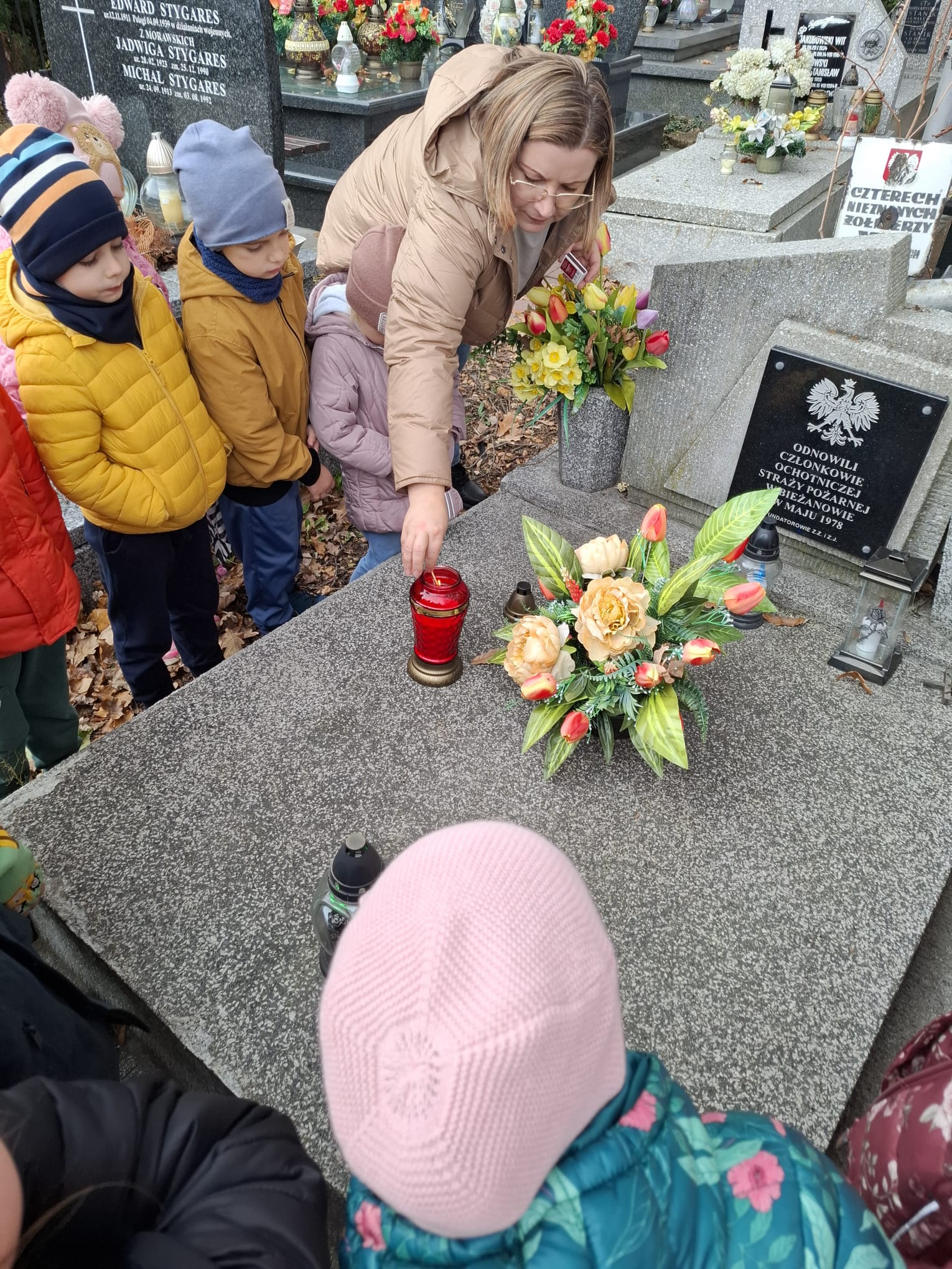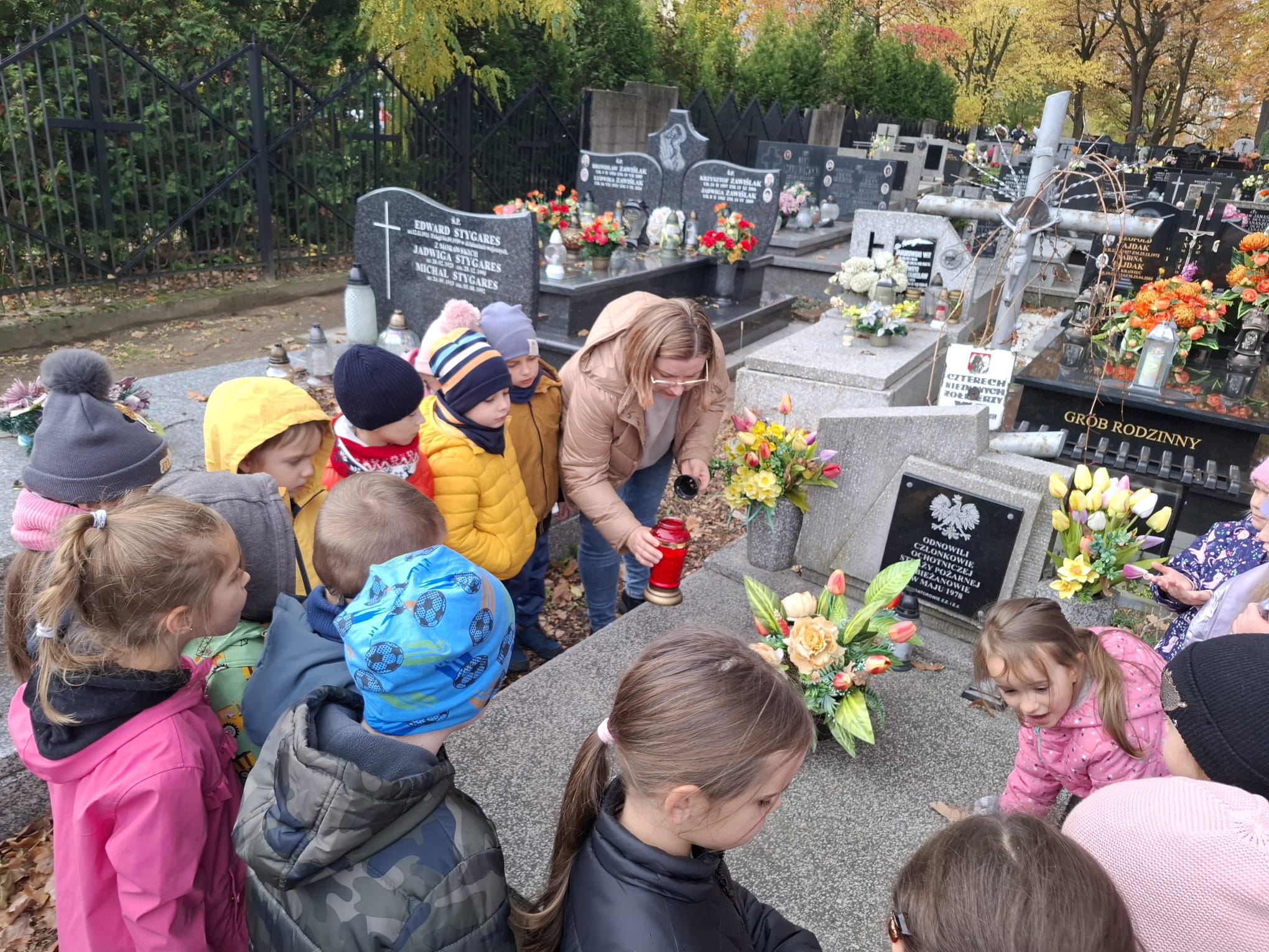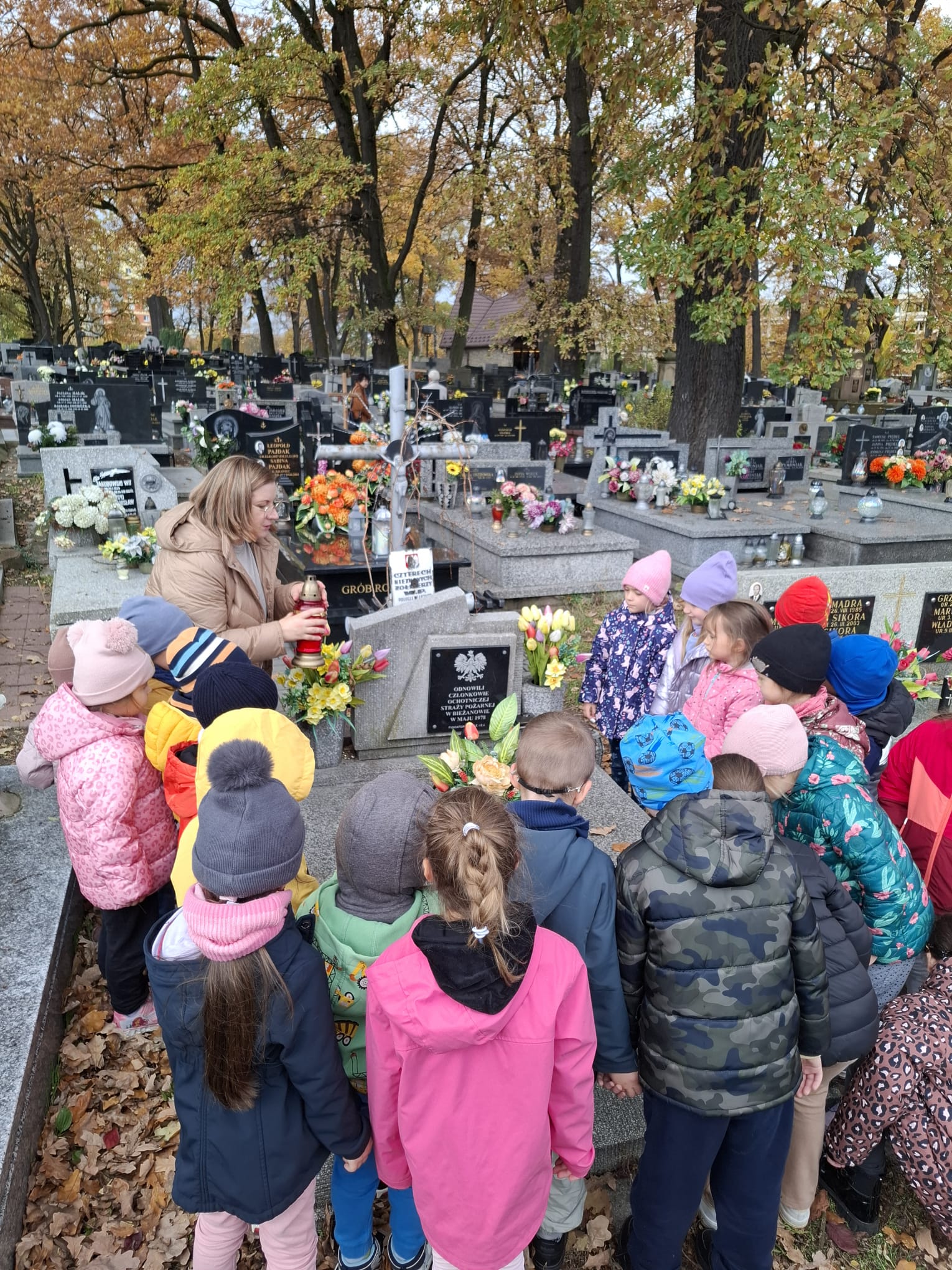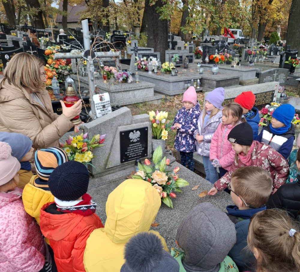 30 października grupa 3 wybrała się na pobliski cmentarz z okazji zbliżającego się dnia Wszystkich Świętych. Dzieci wraz z wychowawcą zgromadziły się przy grobie odnowionym przez ochotniczą straż pożarną. Wychowawca przeprowadziła pogadankę na temat zbliżającego się święta jak również zapaliła znicze na grobie ochotniczej straży pożarnej.