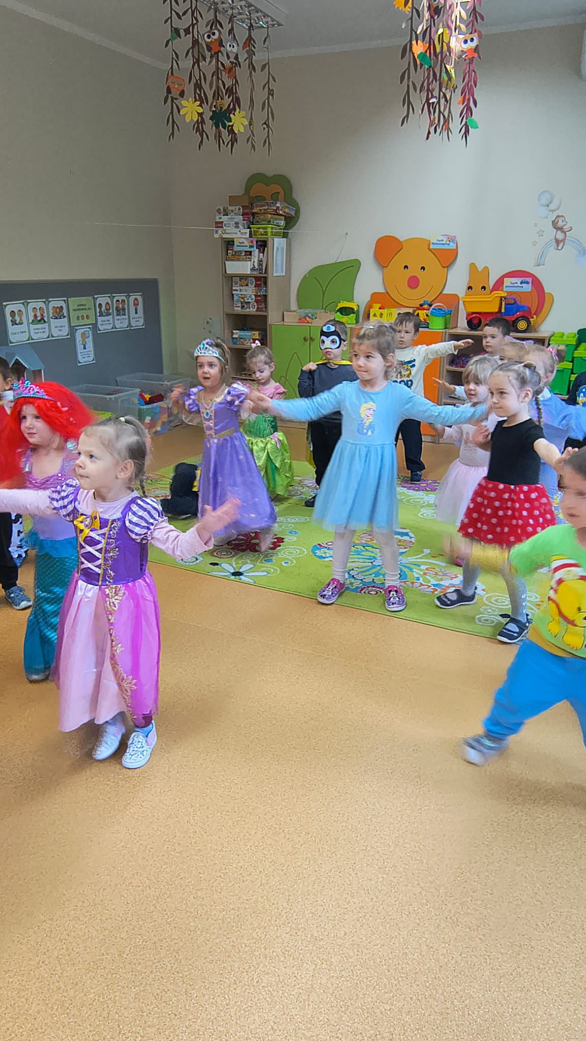 5 listopada dzieci z naszego przedszkola wzięły udział w dniu postaci z bajek. W tym dniu dzieci przyszły do przedszkola przebrane za swoich ulubionych bohaterów. Na dzieci czekało wiele zabaw. Przedszkolaki wzięły udział w tańcach integracyjnych, posłuchały fragmentów bajek, rozwiązywały zagadki i quizy o bajkach , każdy mógł opowiedzieć za kogo jest przebrany.