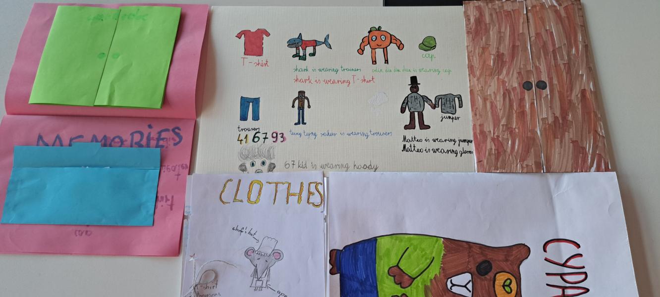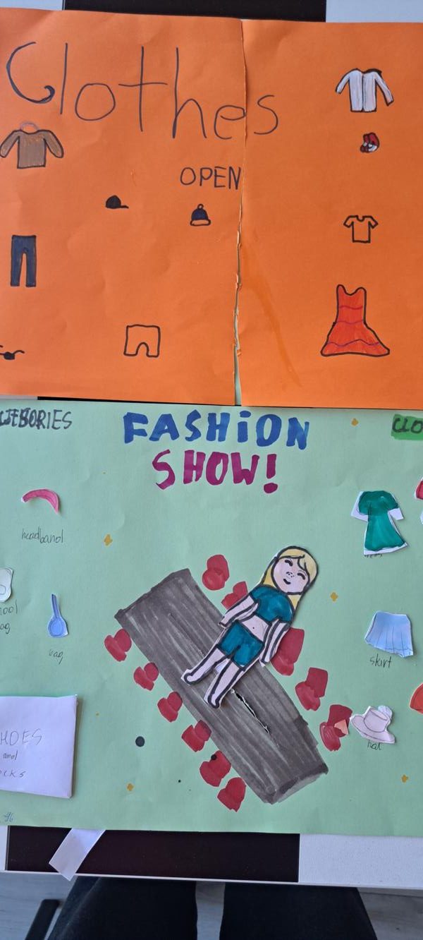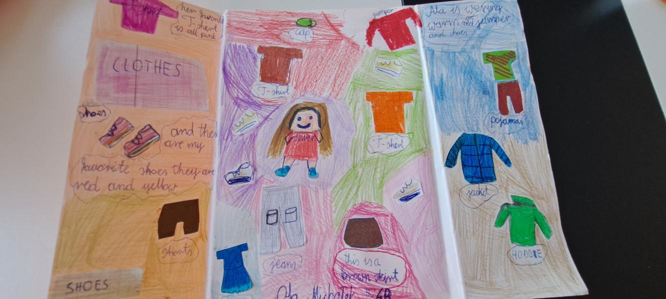 W klasach 4 pojawił się temat mody i ubrań. W klasie 4b uczniowie przygotowali artystyczny Fashion Show i wykonali lapbooki, plakaty, projekty przestrzenne pokazujące i opisujące części garderoby.
