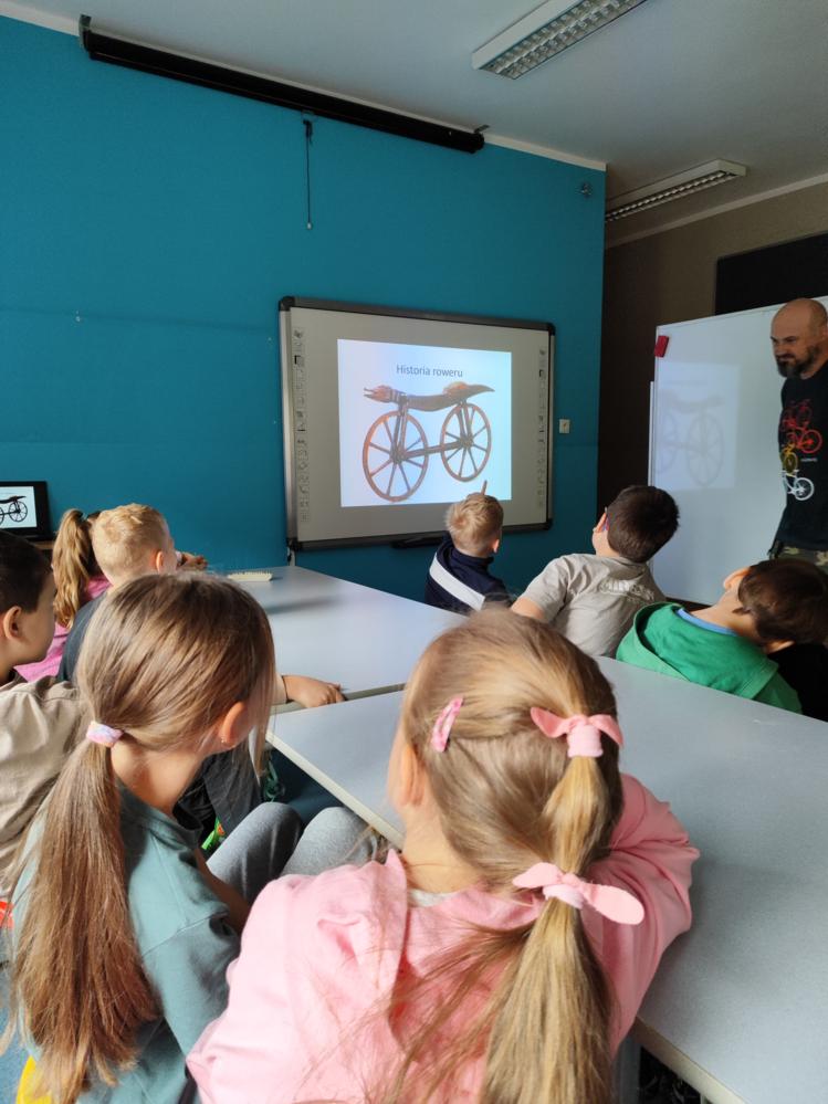 Zajęcia rozpoczęły się od omówienia pierwszych pojazdów przypominających rowery. Następnie dzieci dowiedziały się o wynalazkach, które zrewolucjonizowały jazdę na rowerze, takich jak pedały, łańcuchy czy koła o równych rozmiarach.