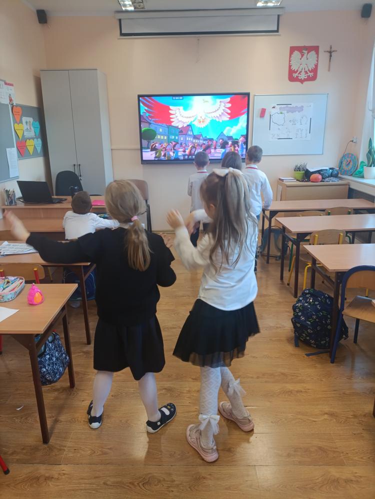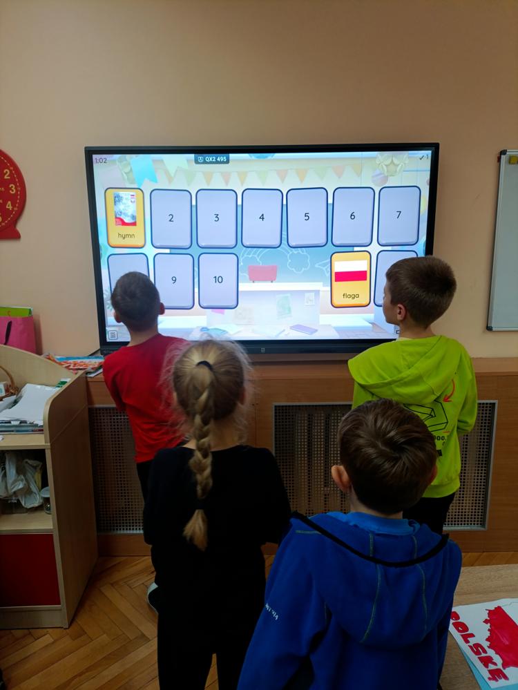 Z zainteresowaniem wysłuchały wierszy i pieśni patriotycznych, a po obejrzeniu filmów edukacyjnych rozwiązywały quizy multimedialne sprawdzające wiedzę o naszej ojczyźnie.