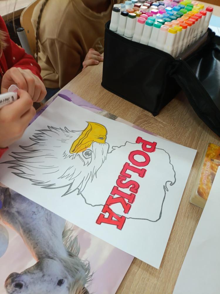 W ramach obchodów Narodowego Święta Niepodległości nasze świetliczaki brały udział w Tygodniu Patriotycznym. Dzieci zapoznały się z pojęciem ojczyzny oraz poznały najważniejsze symbole narodowe. Wykonały piękne kolorowanki i prace plastyczne, a także przygotowały gazetkę świetlicową poświęconą Polsce.