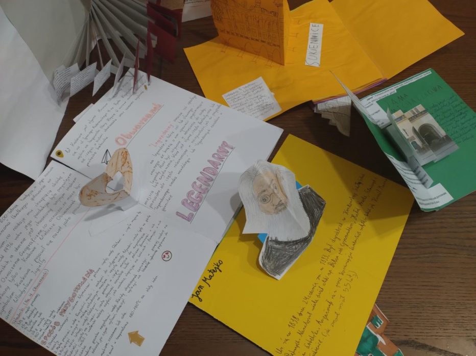 Klasa VI b zapoznała się ze znaczeniem słowa „legendarny”. Poznając legendy krakowskie stworzyła książeczki typu POP-UP o miejscach, osobach i historiach uznawanych za legendarne, realizujący dzięki temu p. 38 modułu I