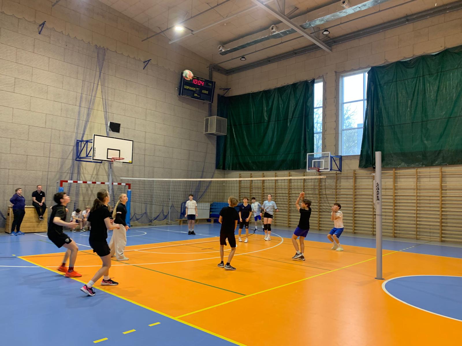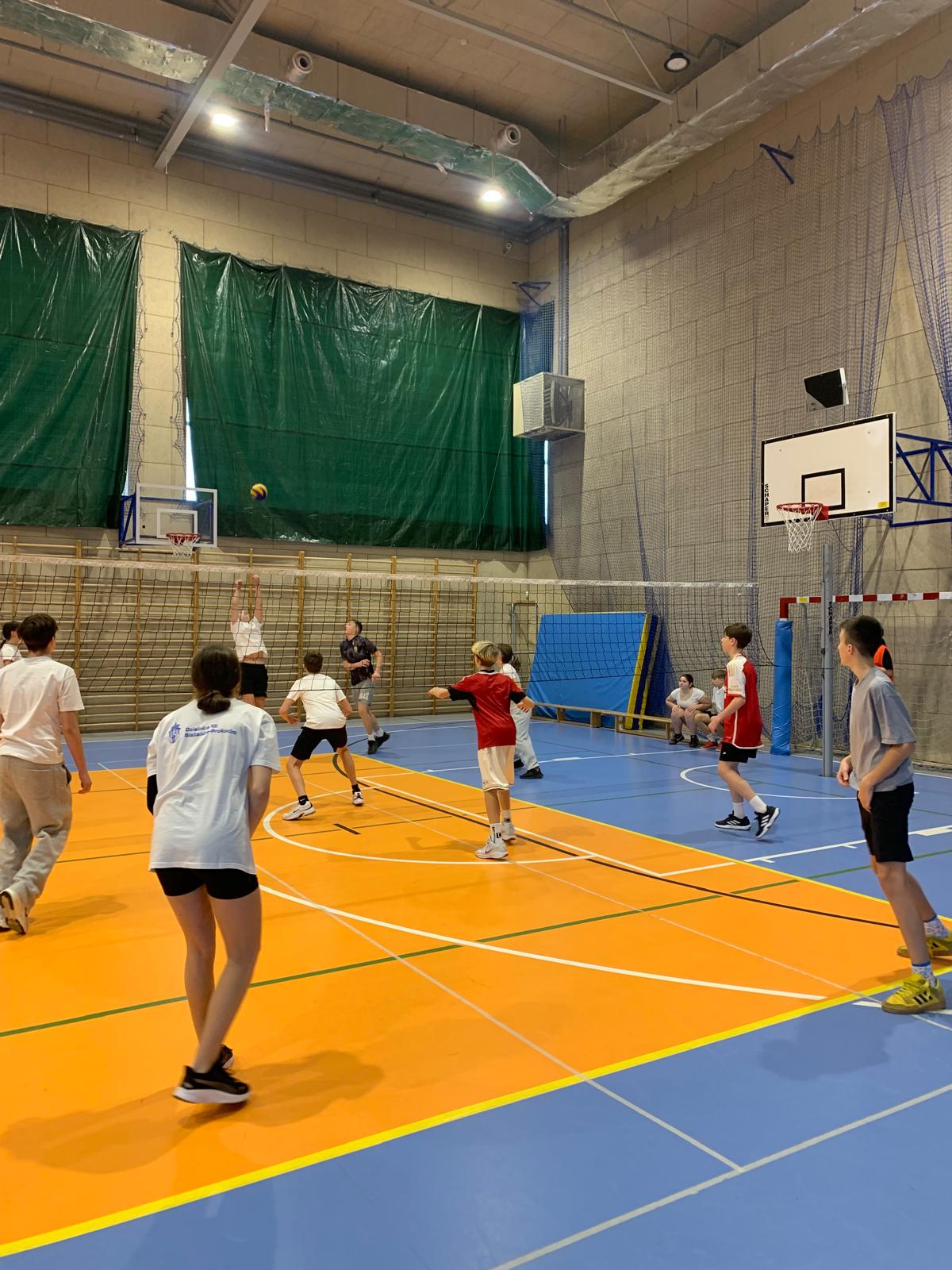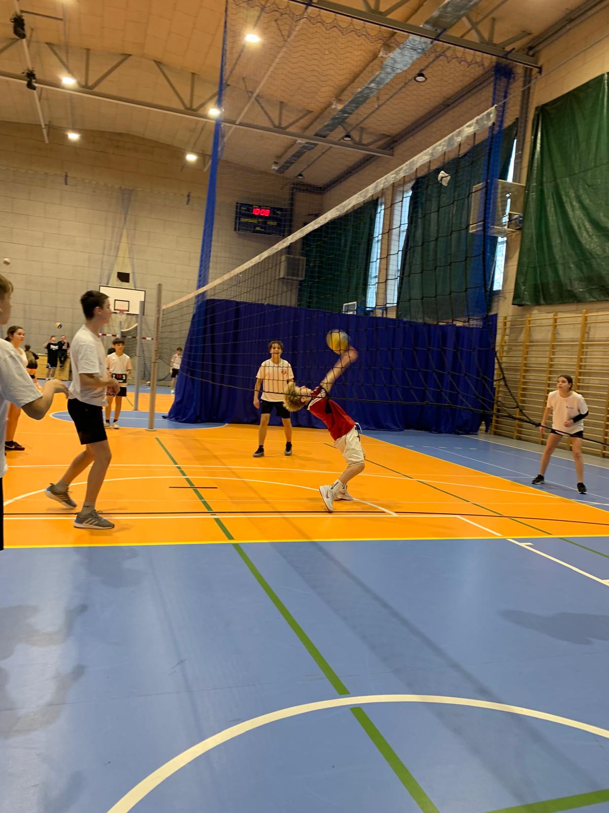 W piątek 5 grudnia odbył się długo wyczekiwany Mikołajkowy Turniej Siatkówki dla klas 7–8. W sportowej hali panowała świetna atmosfera – grała muzyka, publiczność żywiołowo reagowała na każde rozegranie, a zawodnicy dawali z siebie absolutnie wszystko. Było dużo emocji, piękne akcje, walka o każdy punkt i przede wszystkim… ogrom dobrej zabawy.