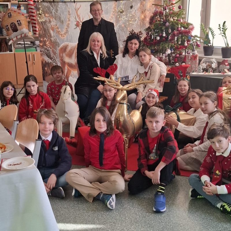 Całość dopełniała urokliwa, świąteczna sceneria – renifery, domek z piernika, laski świąteczne oraz konik na biegunach sprawiły, że poczuliśmy się jak w świątecznej bajce. Ogromną radość przyniosły także świąteczne prezenty.