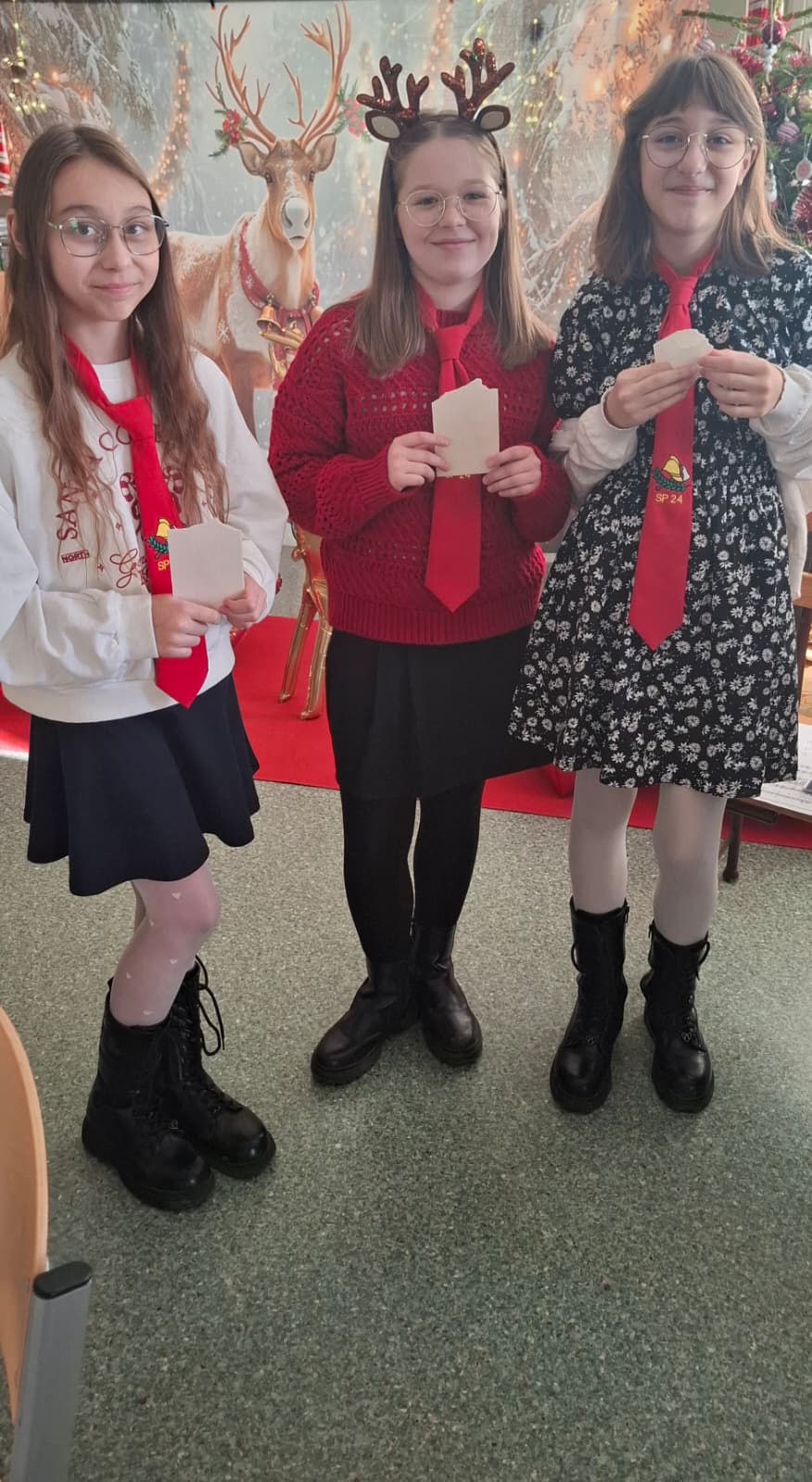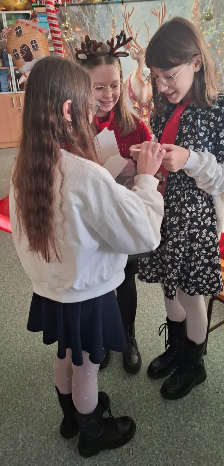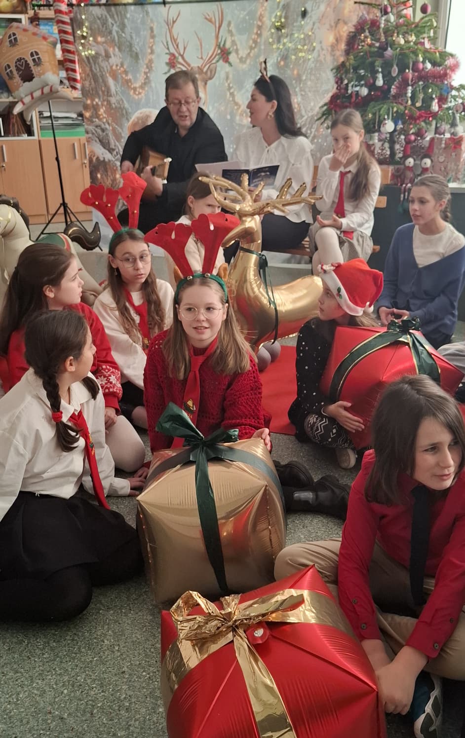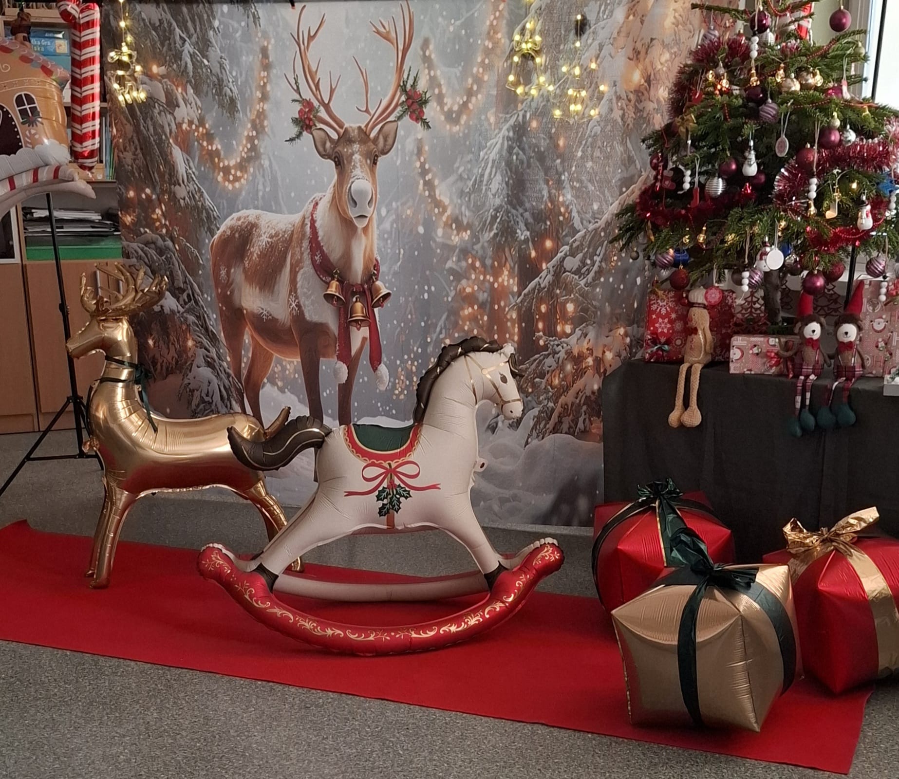 Całość dopełniała urokliwa, świąteczna sceneria – renifery, domek z piernika, laski świąteczne oraz konik na biegunach sprawiły, że poczuliśmy się jak w świątecznej bajce. Ogromną radość przyniosły także świąteczne prezenty.