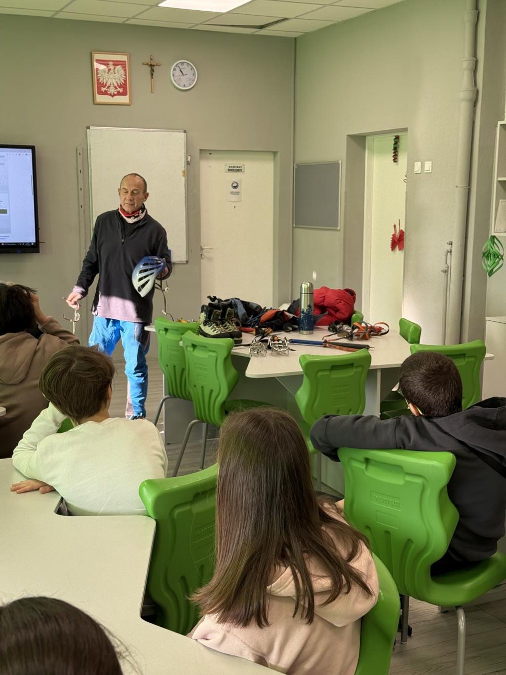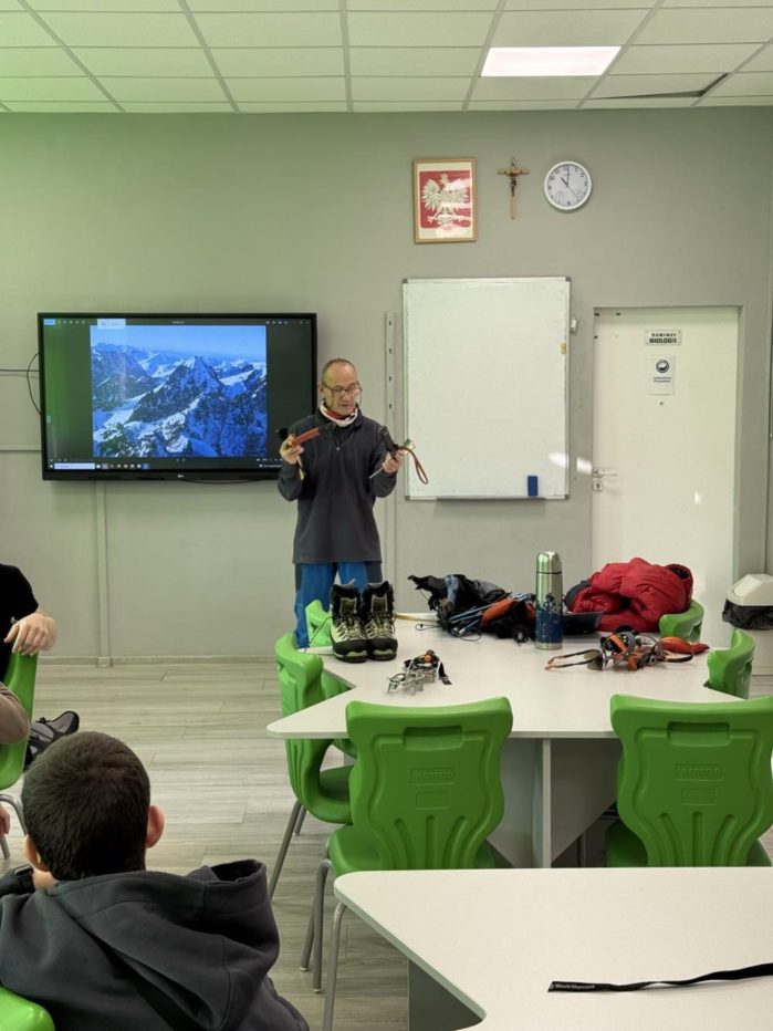 W naszej szkole odbyły się warsztaty wysokogórskie z panem Jackiem Szarkiem. Podczas spotkania uczniowie zapoznali się ze specyfiką wypraw wysokogórskich, zasadami bezpieczeństwa w górach oraz niezbędnym wyposażeniem turystycznym. Prowadzący podzielił się także własnymi doświadczeniami z górskich wypraw, opowiadając o wyzwaniach, jakie niesie ze sobą wspinaczka w trudnych warunkach. Warsztaty były ciekawą i inspirującą lekcją, która poszerzyła wiedzę uczniów oraz zachęciła do aktywnego i odpowiedzialnego spędzania czasu w górach.