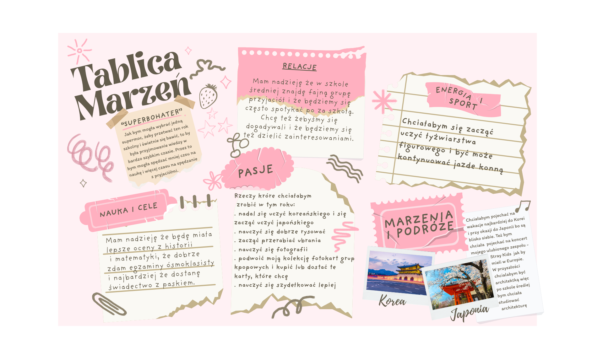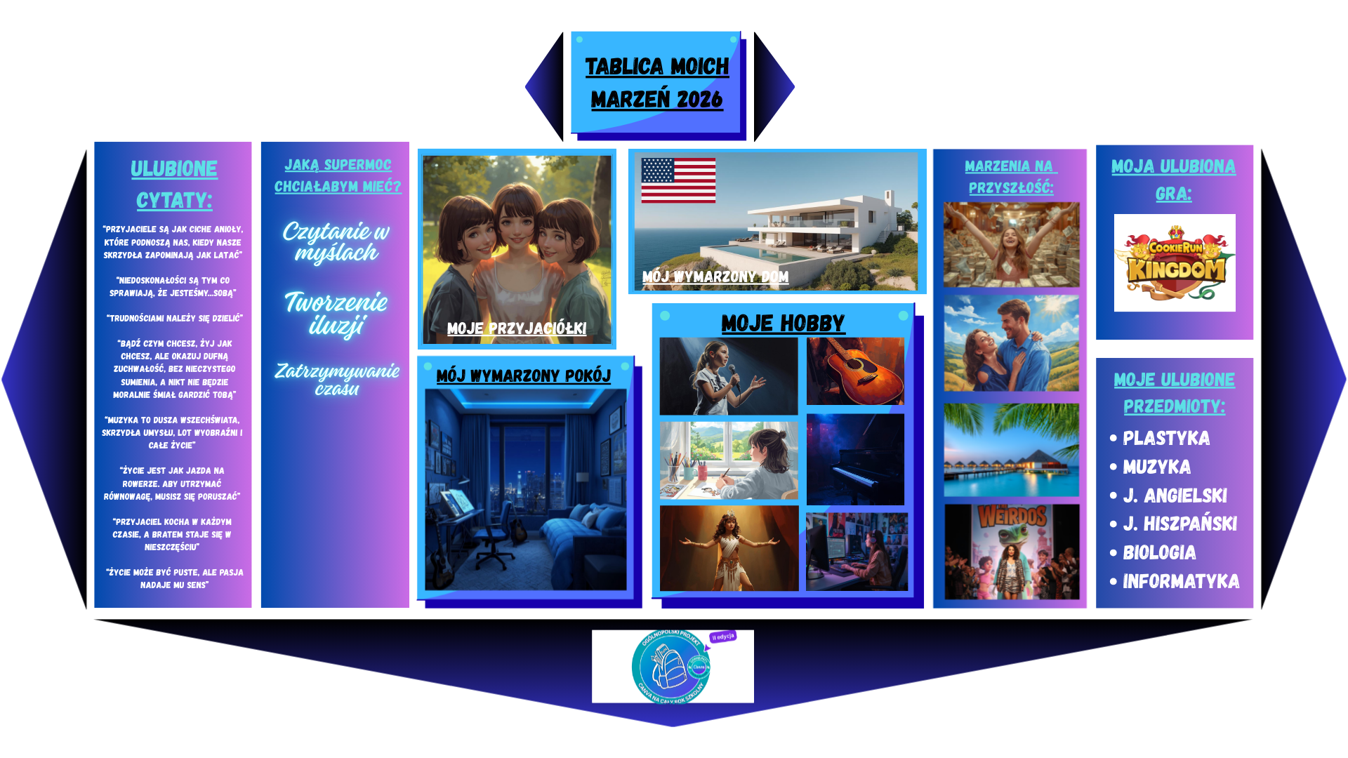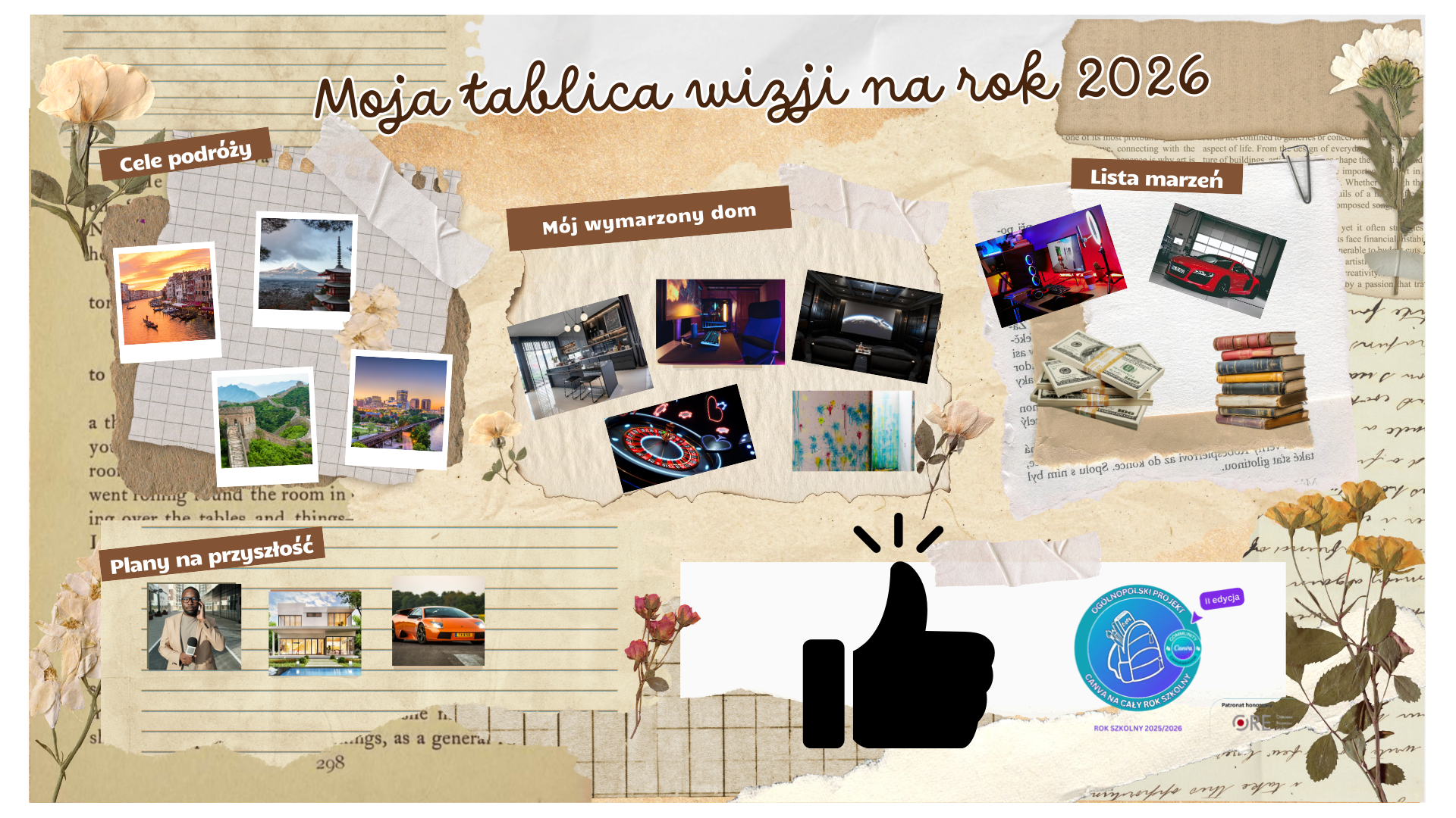Uczniowie klasy 8c zmagali się z kolejnym zadaniem projektowym: Tablica marzeń na 2026 r. Każdy z uczniów marzy o czymś innym. Zobaczcie, jak prezentują się ich prace.