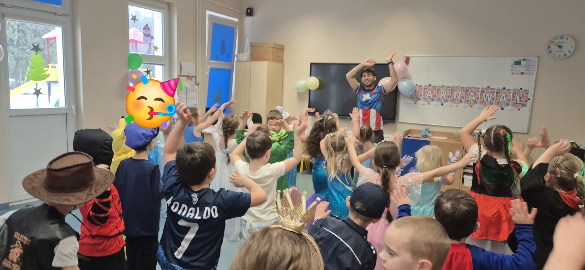 28 stycznia w naszym przedszkolu odbył się bal karnawałowy. Wszystkie dzieci w tym dniu przebrały się za różne postacie z bajek. Bal poprowadził pan Bogdan Myśliwiec. Dzieci tańczyły do swoich ulubionych utworów, nie zabrakło zabaw i tańców integracyjnych. Po balu na każdą z grup czekał słodki poczęstunek.
