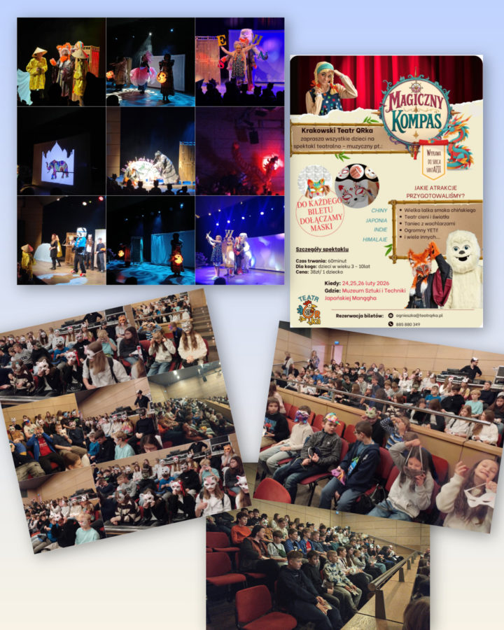 Uczniowie klas: Vc, VIa, VIb, VIc 25 lutego 2026 wyruszyli w niezwykłą podróż do krainy FantAzji.  Dzięki magicznemu kompasowi zwiedziliśmy Chiny, Japonię, Indie i Himalaje. Poznaliśmy kulturę Azji, ćwiczyliśmy jogę i oglądaliśmy niezwykły teatr cieni, a wszystko to w ramach przedstawienia „Magiczny kompas” Krakowskiego Teatru Warka.