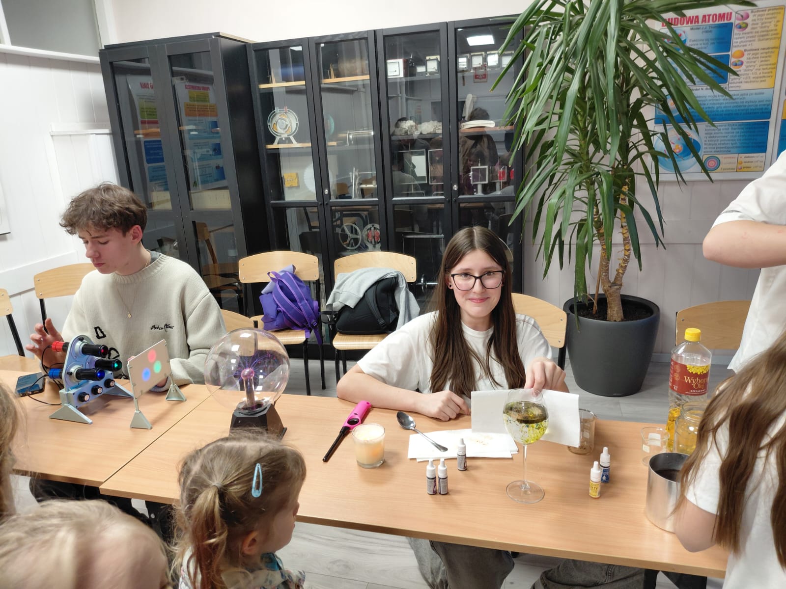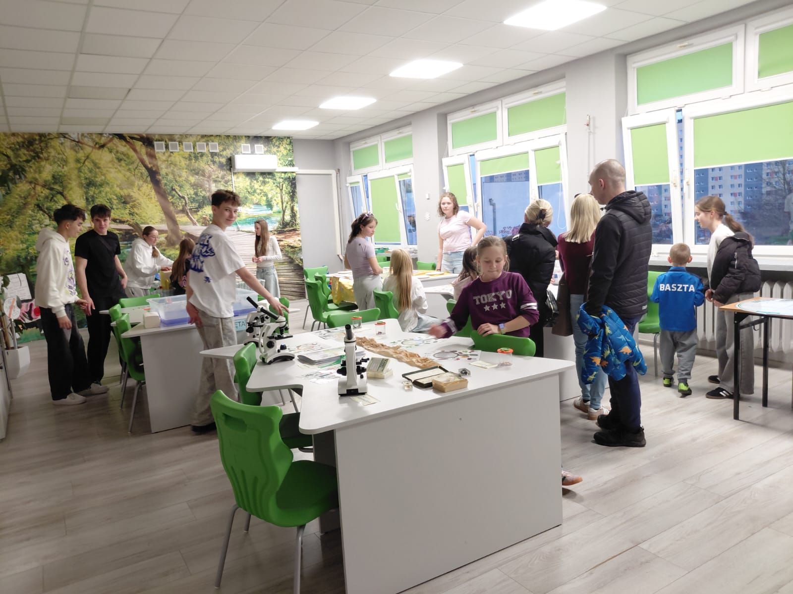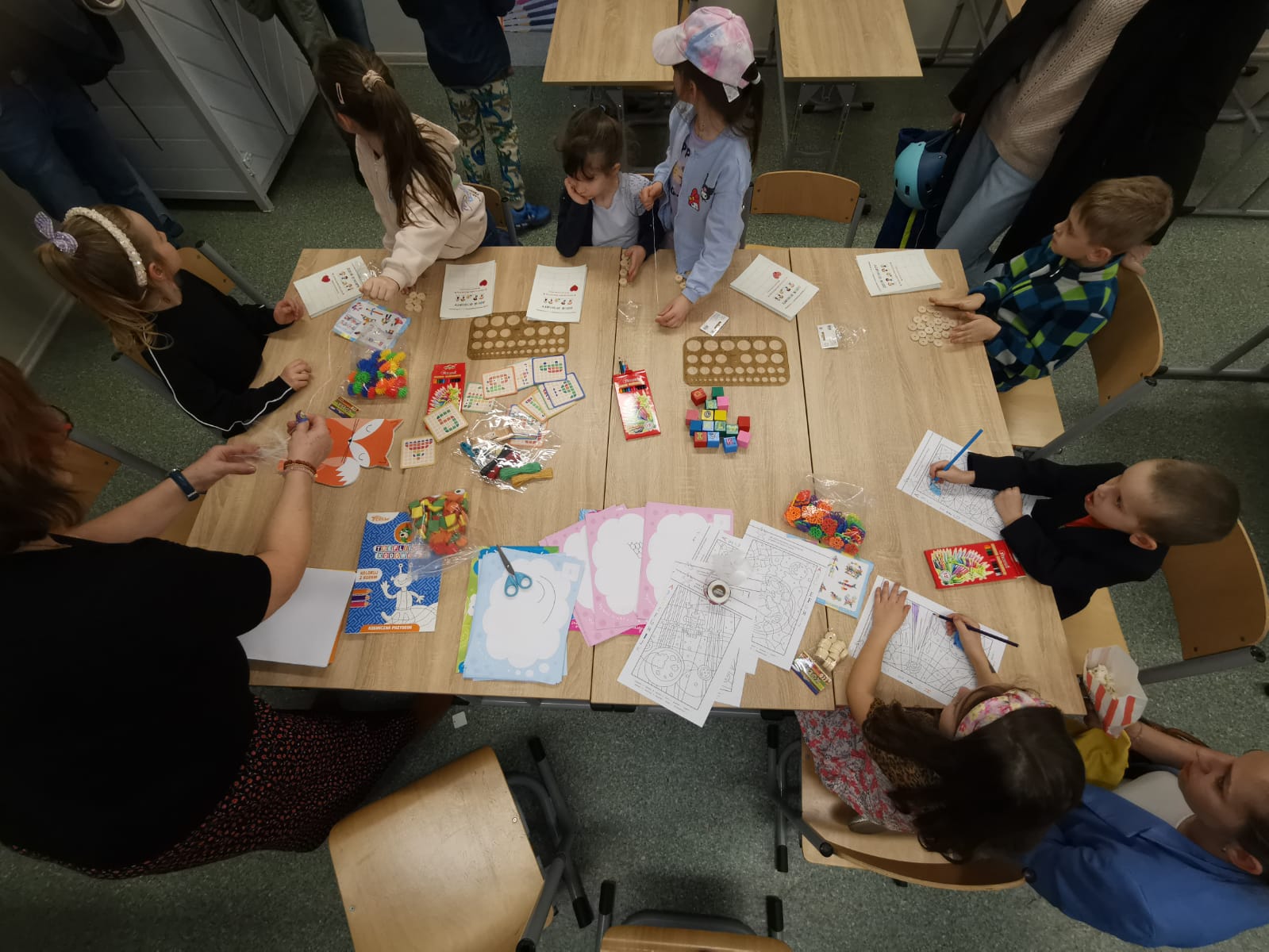 Przyszli pierwszoklasiści wraz z rodzicami odwiedzili nasze klasy i pracownie oraz salę gimnastyczną. Każda strefa obfitowała w liczne atrakcje, od fabryki biżuterii, tatuaże, kolorowe aktywności plastyczne po zabawy z liczbami, kodowanie i programowanie zaawansowanych robotów, doświadczenia chemiczne oraz fizyczne.