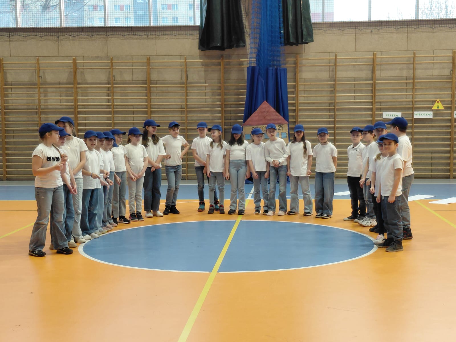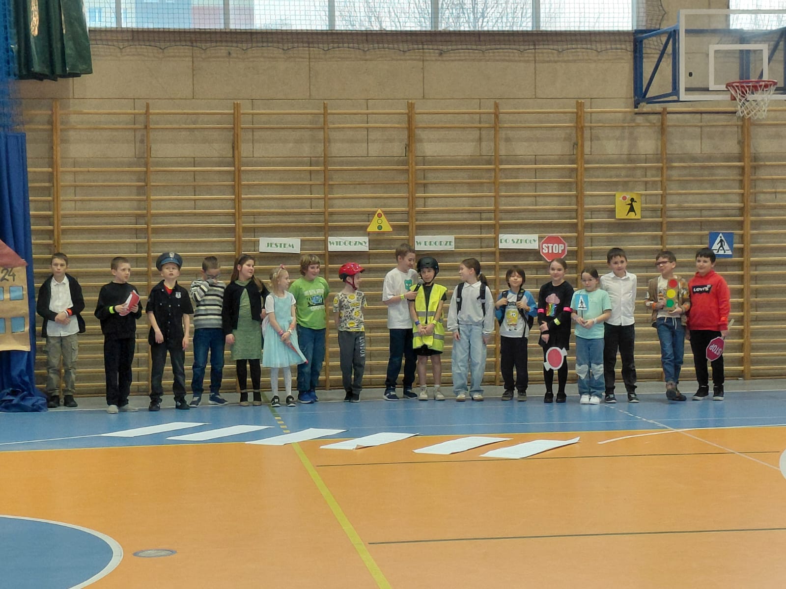 Wspólne spotkanie na sali gimnastycznej pozwoliło zapoznać się gościom z licznymi talentami naszych uczniów, którzy zaprezentowali się w spektaklu ,,Bezpieczna droga do szkoły” oraz w kilku piosenkach, w tym przygotowanej w ramach warsztatów zorganizowanych przez Radę Dzielnicy XII.
