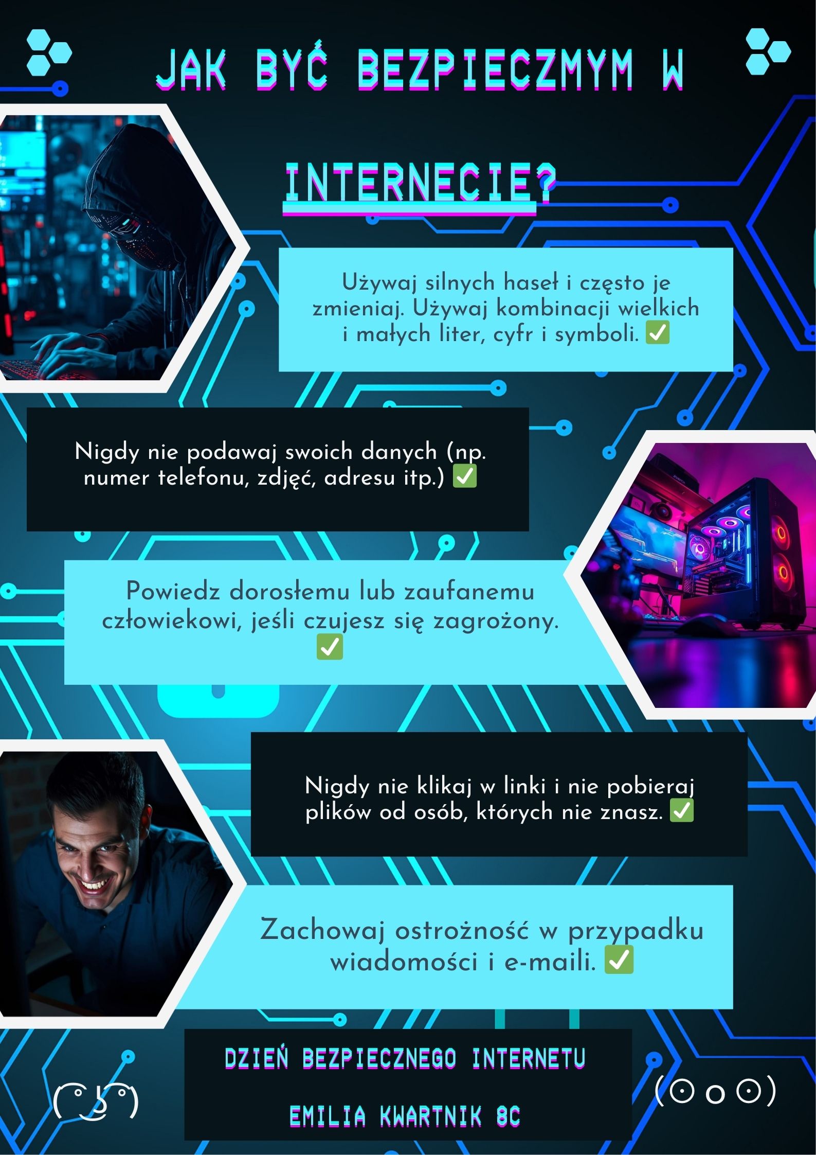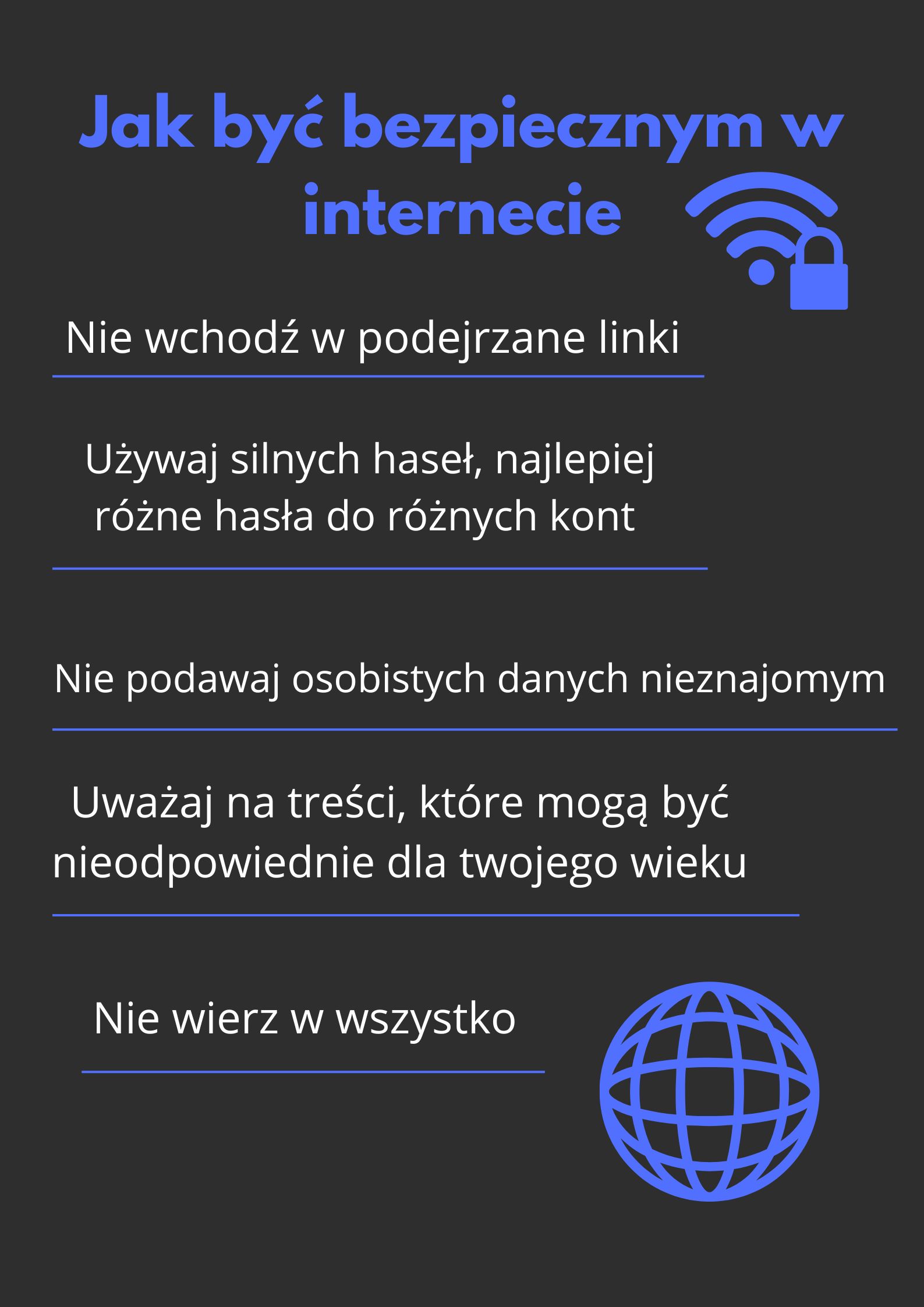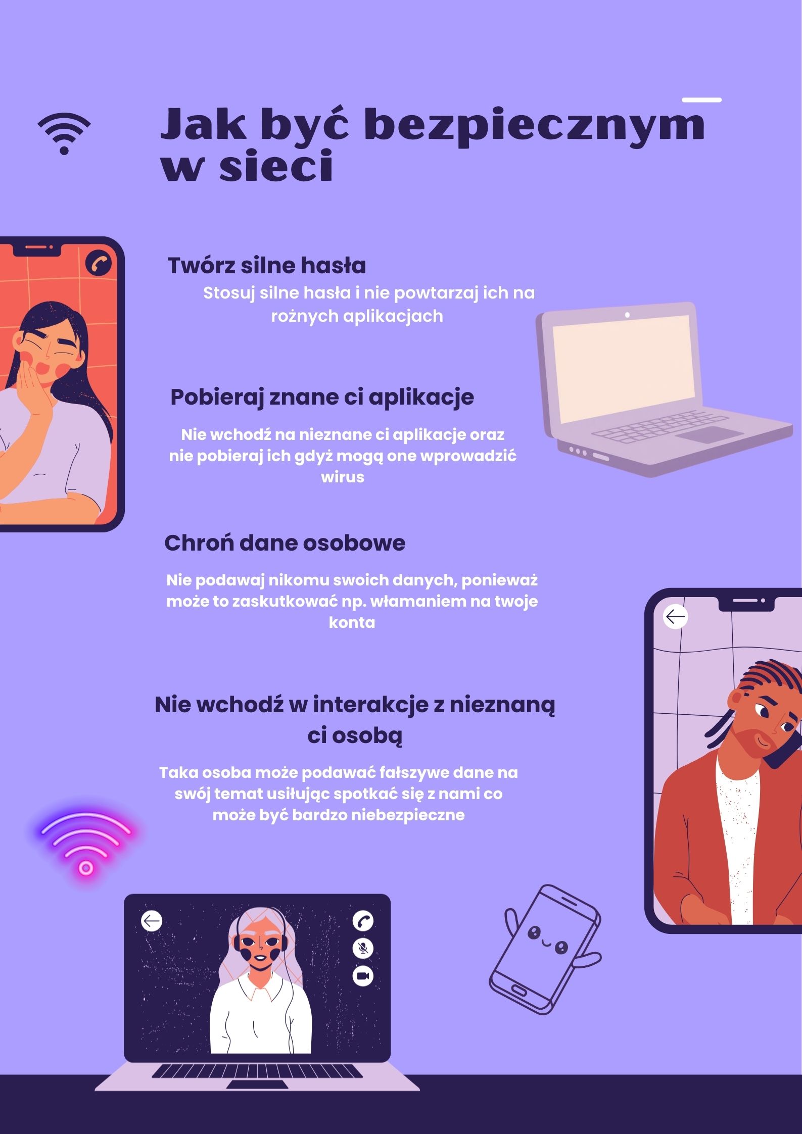 Uczniowie klasy 8c postanowili podzielić się swoją wiedzą i dać dobre rady młodszym kolegom i koleżankom dotyczące bezpieczeństwa w sieci.