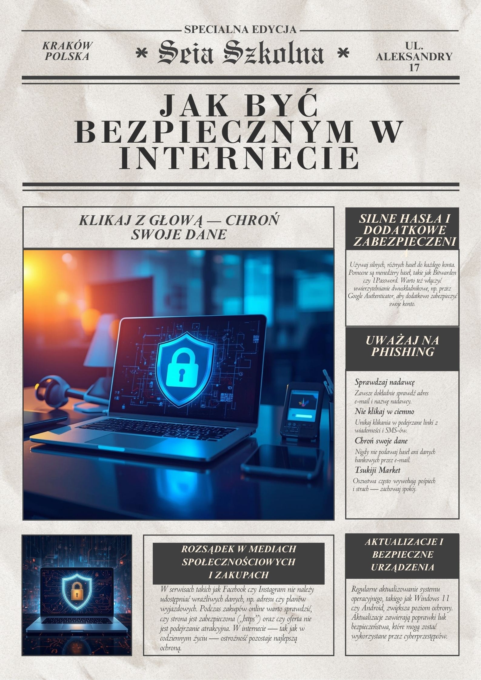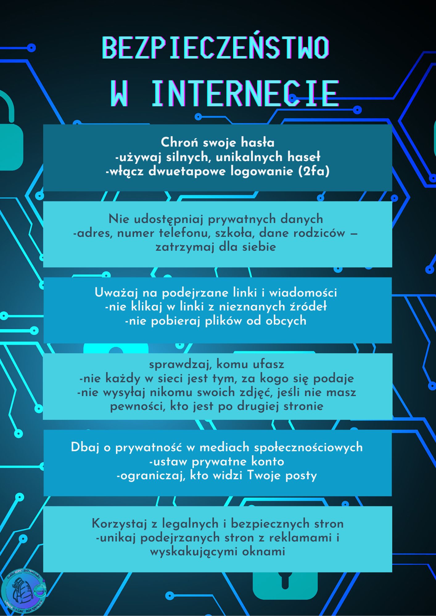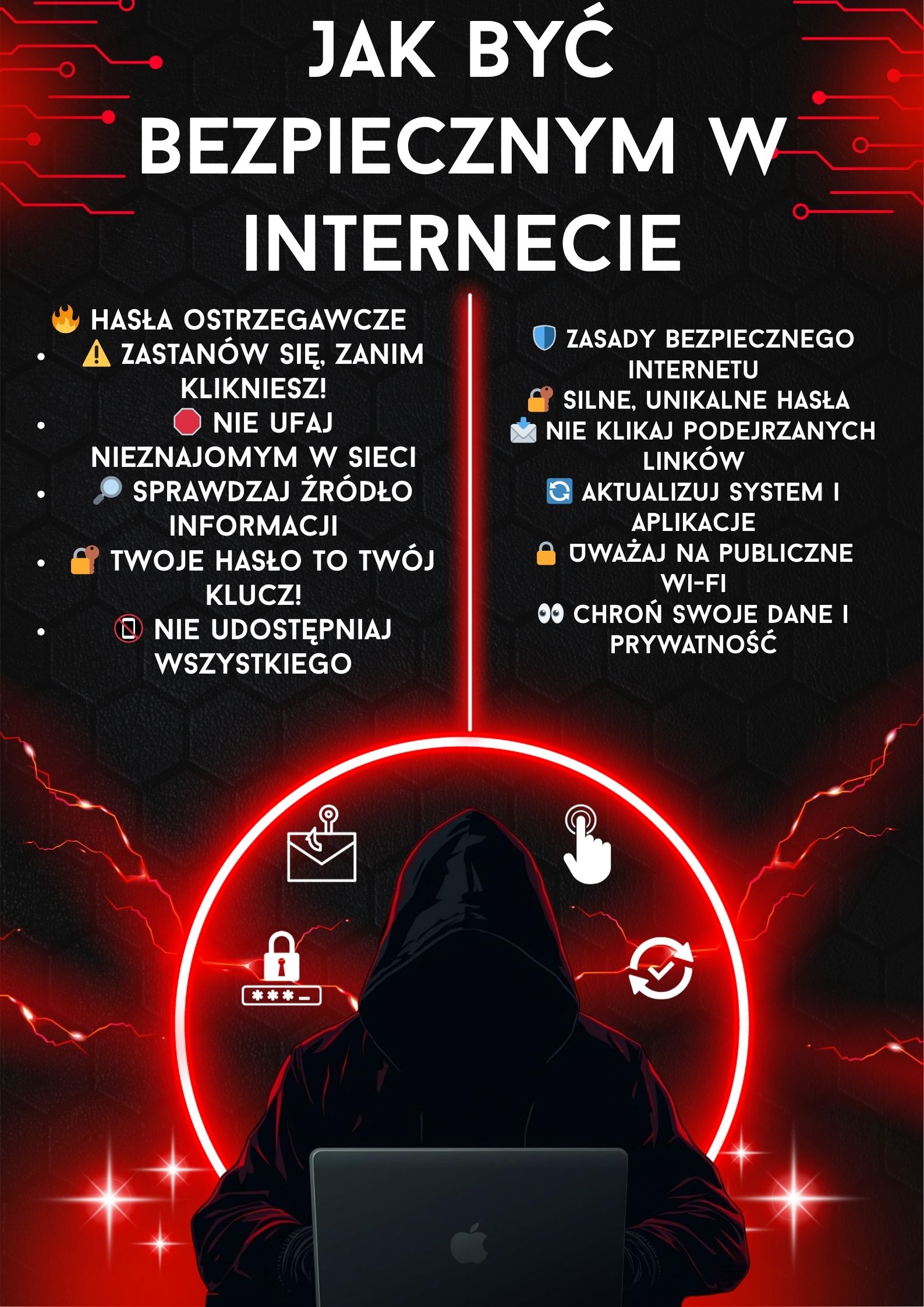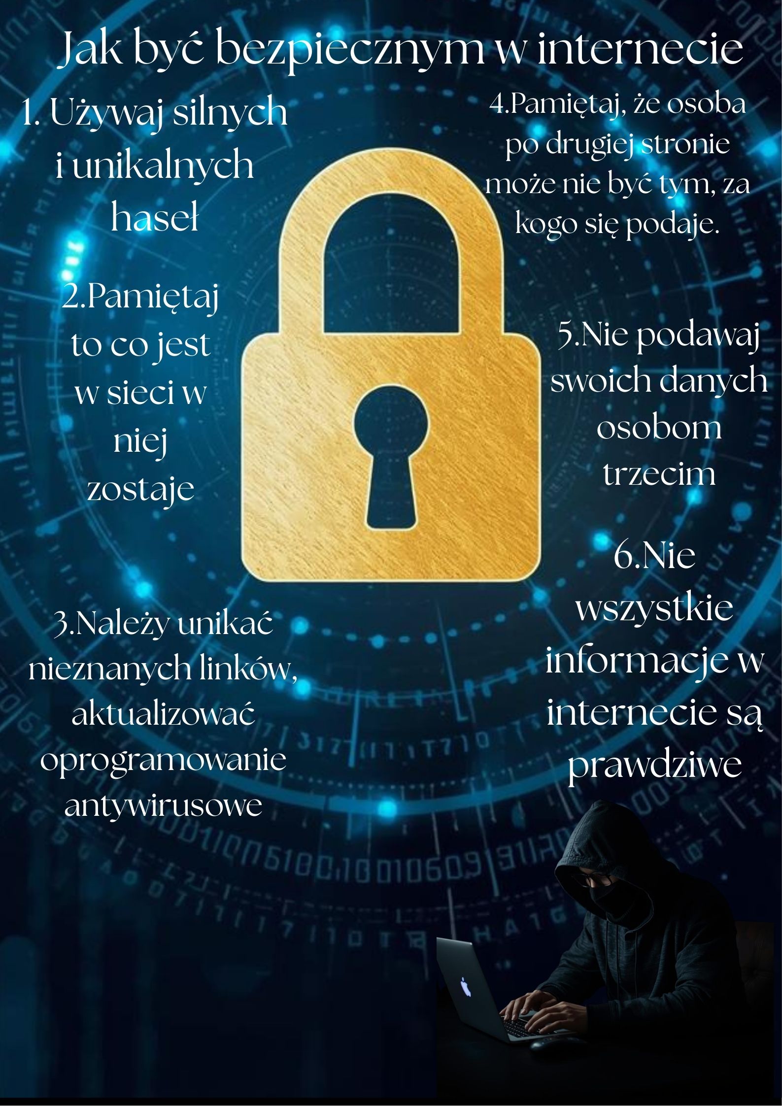 Uczniowie klasy 8c postanowili podzielić się swoją wiedzą i dać dobre rady młodszym kolegom i koleżankom dotyczące bezpieczeństwa w sieci.