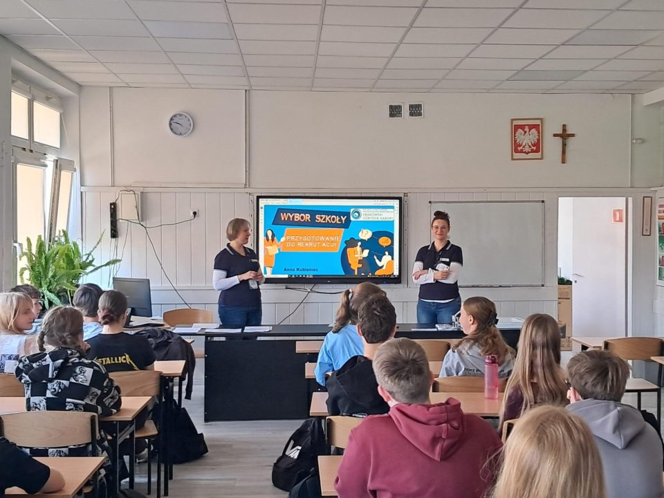 W dniu 19.03.2026 r. w naszej szkole odbył się cykl warsztatów z doradcami zawodowymi z Krakowskiego Ośrodka Kariery. Podczas spotkań uczniowie mieli możliwość zapoznania się z różnymi typami szkół oraz zasadami funkcjonowania systemu rekrutacyjnego.