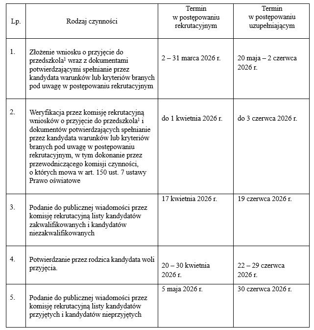 Terminy przeprowadzania postępowania rekrutacyjnego i postępowania uzupełniającego, w tym terminy składania dokumentów, na rok szkolny 2026/2027: